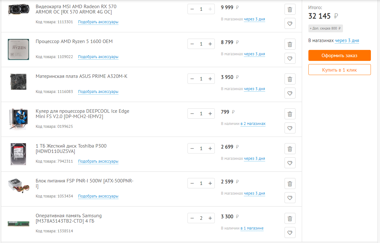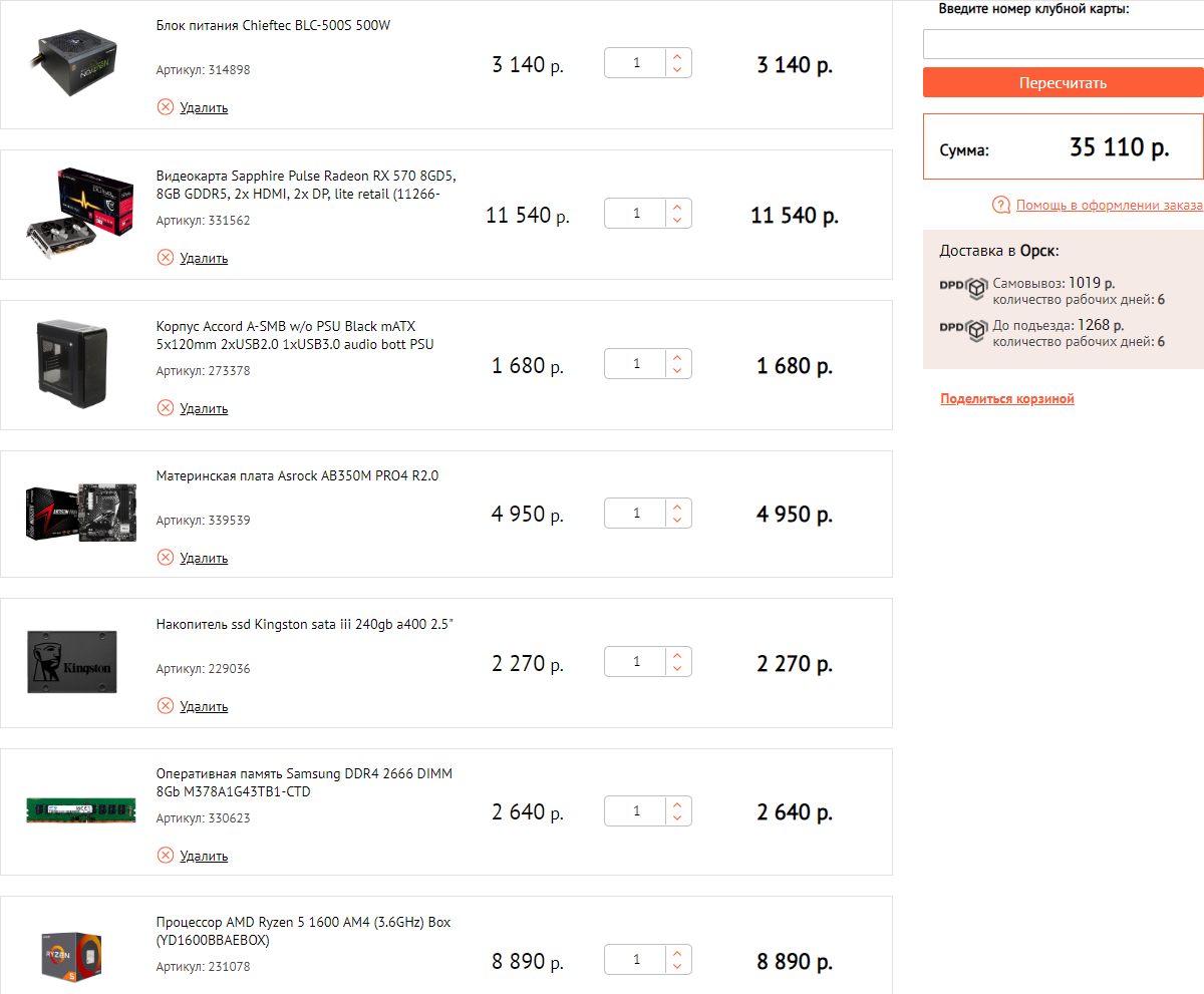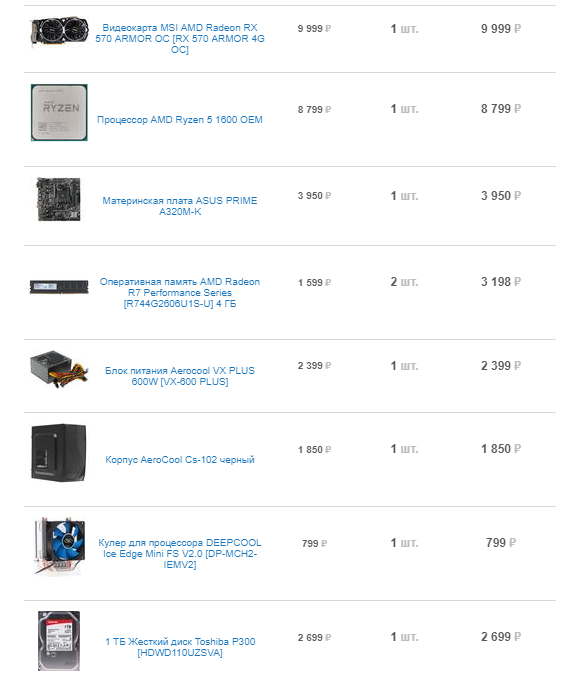 День добрый тов. форумчане. 1) 30 тысяч рублей. Максимум 35 к. 2) г. Орск, Оренбургской области 3) Что собираетесь брать: - Только системник 4) Нужен системник под игры, фильмы, серф инета, учебы для мальчишки 9 класс. а) Имеется монитор hp 22w 1ca83aa 5) Разгон не планируется 6) Компьютер минимум на 5 лет, без доп. вливаний 7) Старый винчестер, но он пойдет как архив фото, на него думаю смыла расчитывать нет, ему минимум лет 7, если только под систему брать ссд, либо м.2, если уложится в сумму. 8) К бренду нет особых предпочтений. Самое главное производительность за указанную сумму. 9) Свой вариант, оцените плюсы минусы. Итог 33 693. Может стоит заменить проц на райзен 3, и добавить на видео карту... Всем заранее спасибо.