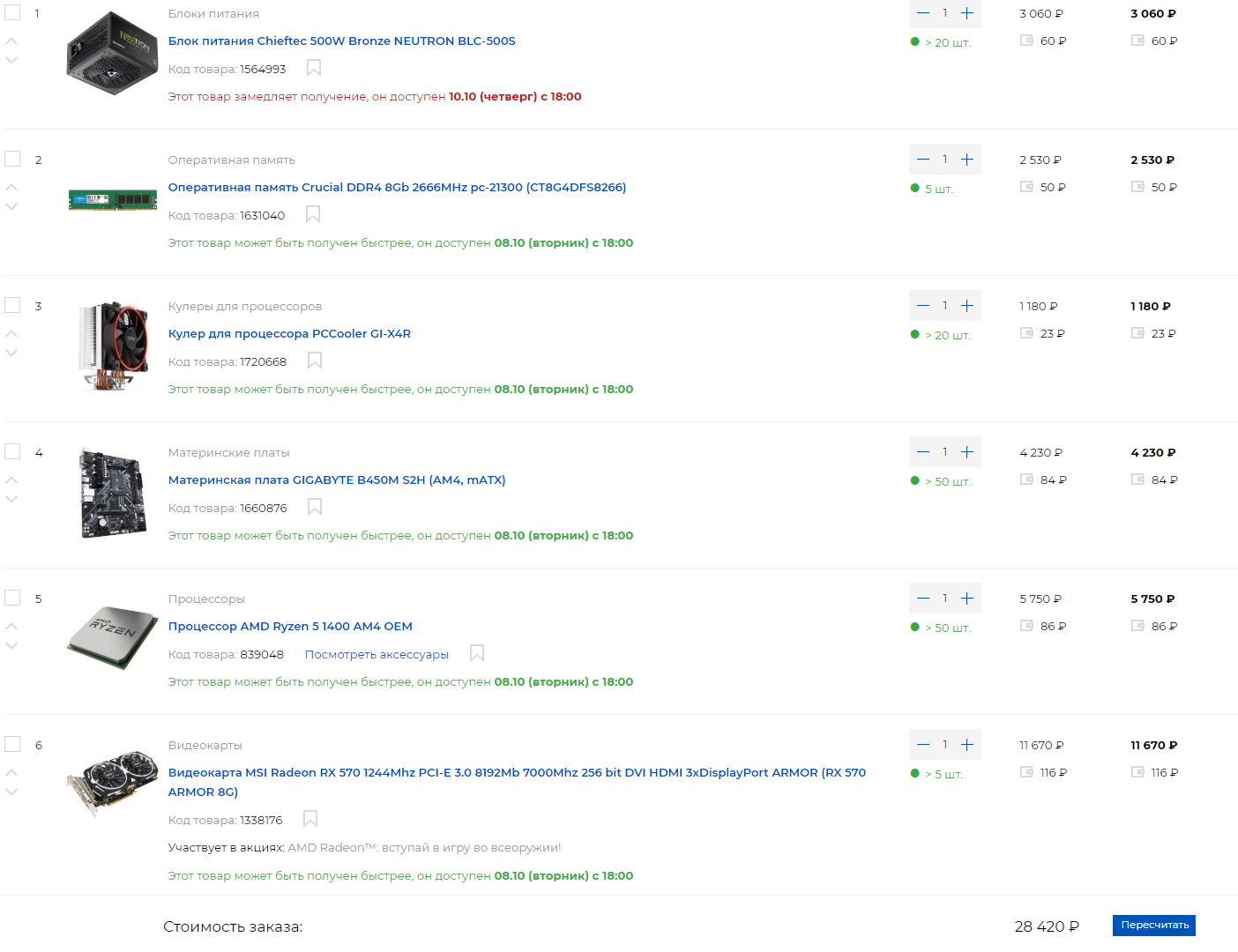 В общем я понял, что надо брать минимум 1400 и 570. И вот что получилось по нашему магазину (сторонние города товарищем, подбирающим машину, не рассматриваются) до 30 руб: ЦПУ только боксовый, что грустно. ОЗУ только 8. Денех для корпуса и ЖД не осталось - так ему и передам