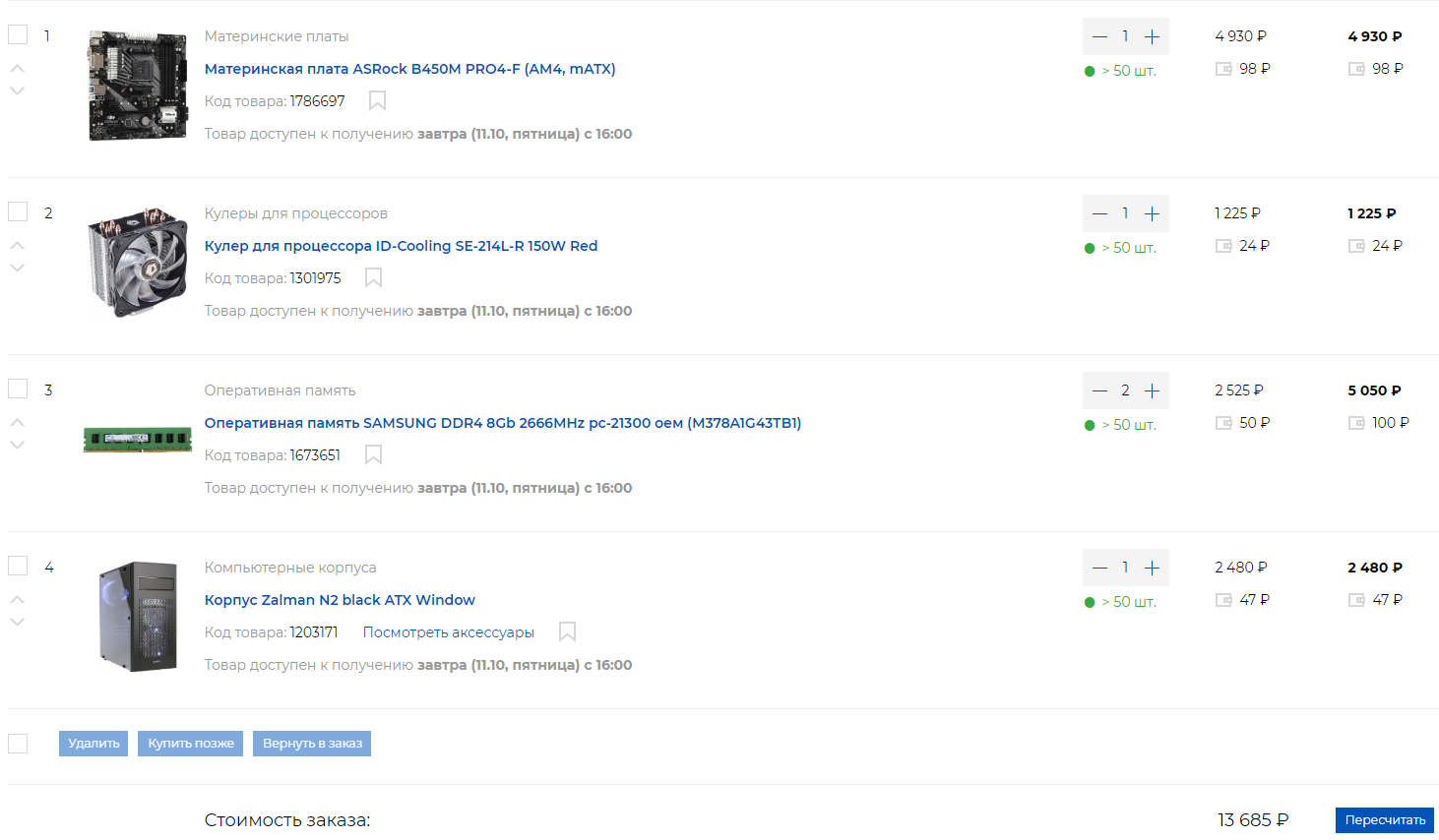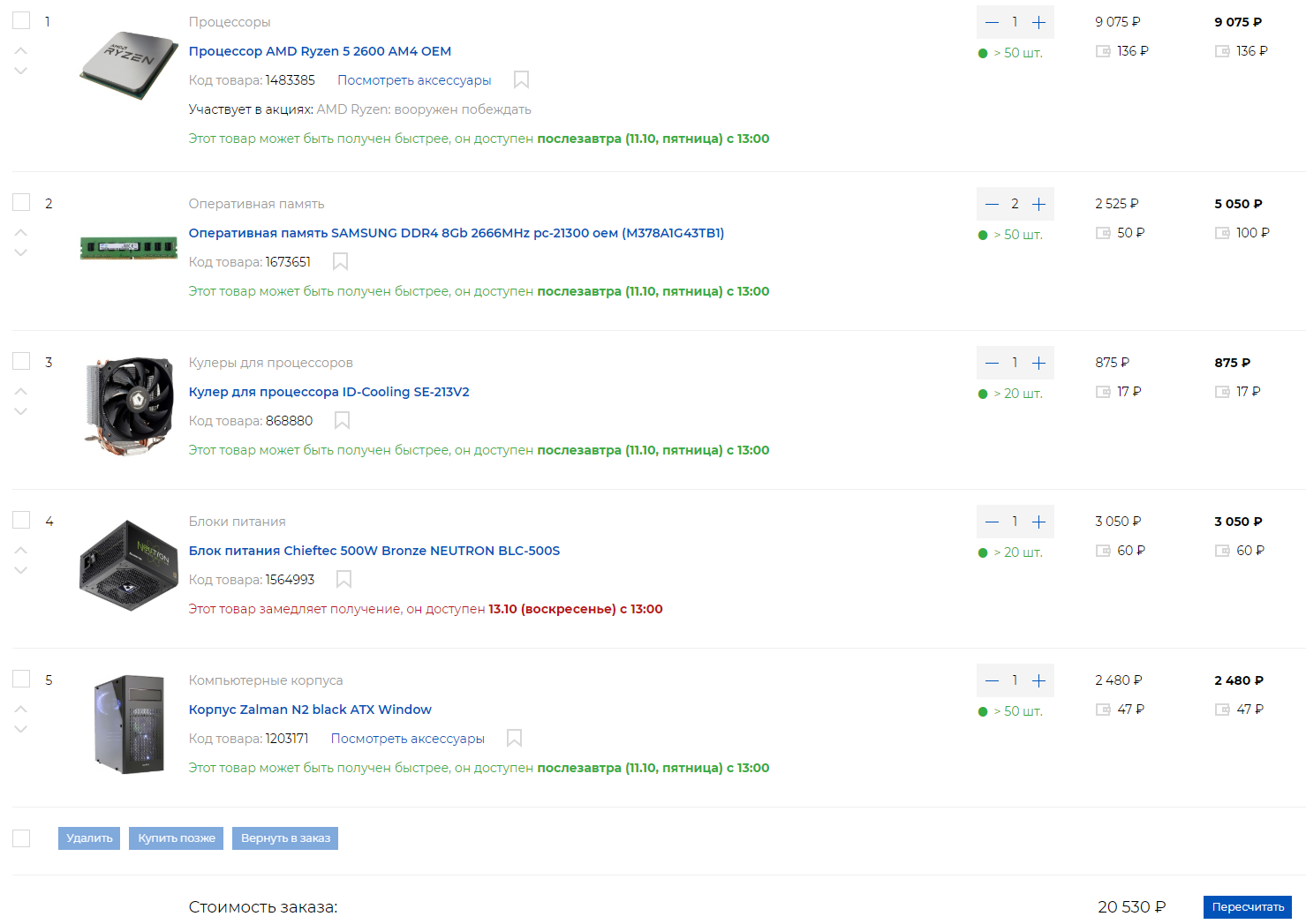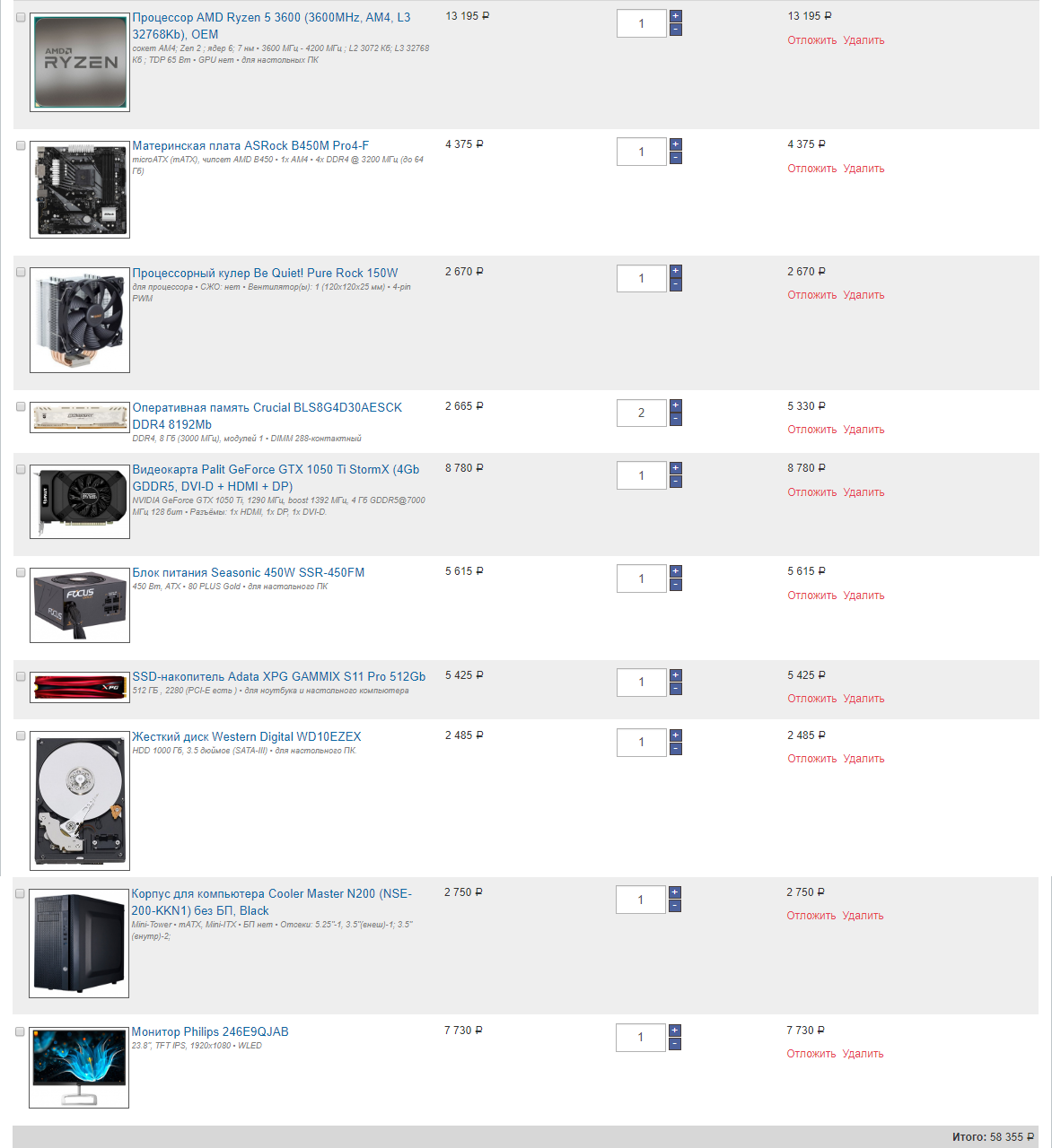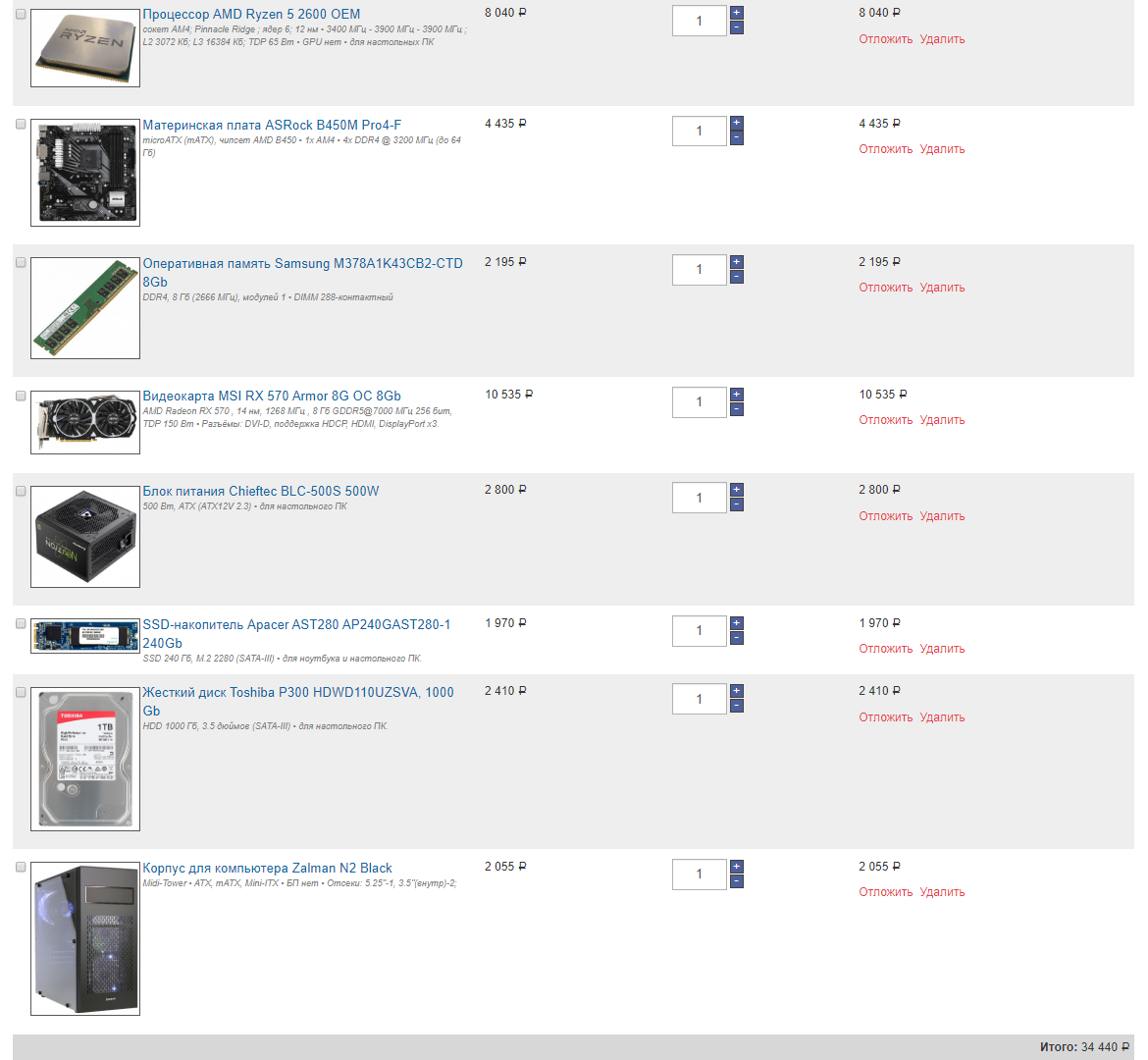 Добрый день! 1. До 40 т.р. 2. г.Орел, nix.ru 3. Только системник 4. Для игр и маленького sql сервера 4а. FULLHD 1080 новые игры (2017-...), 4K (старые до 2017). В основном RPG (Skyrim, Fallout, Divinity: Original Sin 2 и тд.), всякие Cyberpunk 2077 в FULLHD 5. Нет, если только память по XMP 6. Нет 7. HDD 1TB, SSD (Samsung 850 EVO 250гб) и видеокарта Gigabyte RTX 2060 OC GAMING 8. Планирую поместить все в Meshify C Mini(входит в бюджет) (но не критично, главное чтобы у корпуса спереди были кулеры и продуваемое пространство (не стекло на передней панели)) 9. https://orel.nix.ru/scripts/2basket.php ... 2590c35102