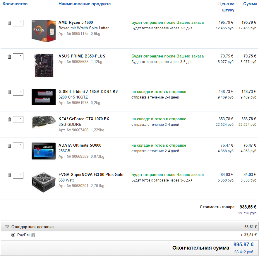 coltmauser А где переплата? У тебя на скрине сборка с немецкого магазина CU с ценами без НДС, а bookmaker советовал другому человеку из обычного магазина РФ, где цены с НДС.