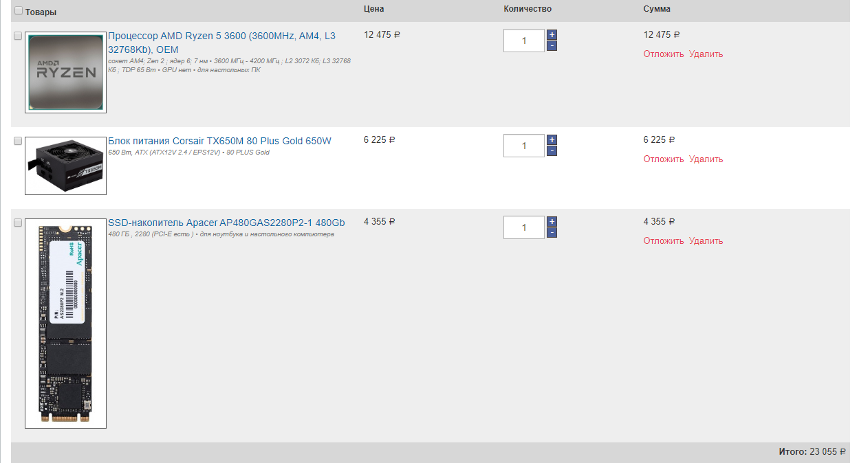 1) Нужен системник в офис для интернет серфинга и работы в CorelDraw, Photoshop на базе Ryzen 5 2400g. Бюджет - как можно ниже, но без ущерба в надежность, т.к. апгрейд не планируется. Без жесткого диска, видеокарты и процессора с кулером (уже есть). Из пожеланий - 16гб оперативки (для отчета перед начальством, ибо по другому ему производительность не объяснить). 2) Нужен дособрать/пересобрать домашний системник. Используется для игр, работы с 2D графикой. Монитор 1920х1080, но в скором будущем обновлю. Бюджет ~50к. В наличии (использовать желательно, но не обязательно): материнка MSI X370 Gaming Plus, 2 планки по 4GB Kingston HyperX FURY Black Series DDR4 2666 PC21300, БП Chieftec Force series CPS-500s 85% Bronze, SSD, жесткий диск, корпус. Наверное, на основе Ryzen 7 2700 + GTX 1660 ti + 2 планки по 8 гб оперативки, чтоб совместить со старыми планками для 24гб в общем.