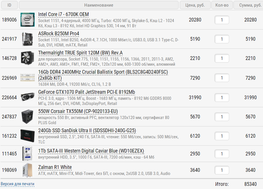 + Крепёж Thermalright AM4 AMD Ryzen тип B. Итого: ~ 92 583 руб. Процу сразу выставить 3.8GHz@1.35V, а память разогнать до 3200 MHz. Монитор желательно пощупать как настроен овердрайв - скорость матрицы, чтобы не были видны смазы, но в целом монитор внушает доверие, либо брать с G-Sync: Dell S2716DG .