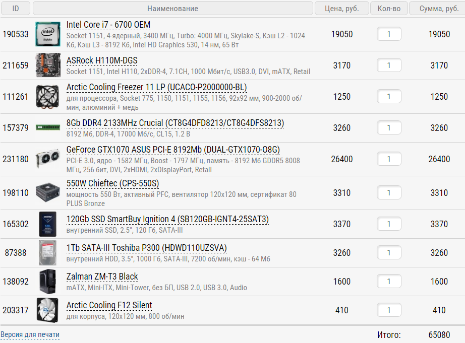 1) 60-65к 2) г.Москва. 3) Только системник 4) Игры а) Текущий монитор: 1920х1080, возможна замена в будущем. Игры типа Action. CS GO, Tom Clancy's Rainbow Six Siege, GTA V, Diablo III и т.д 5) Разгон не планирую. 6) Апгрейд не хотелось бы делать 1-2 года. 7) Железа нет. 8) Было бы здорово, если бы видео было бы nVidia. И прям совсем хорошо, если бы все в рамках одного магазина.