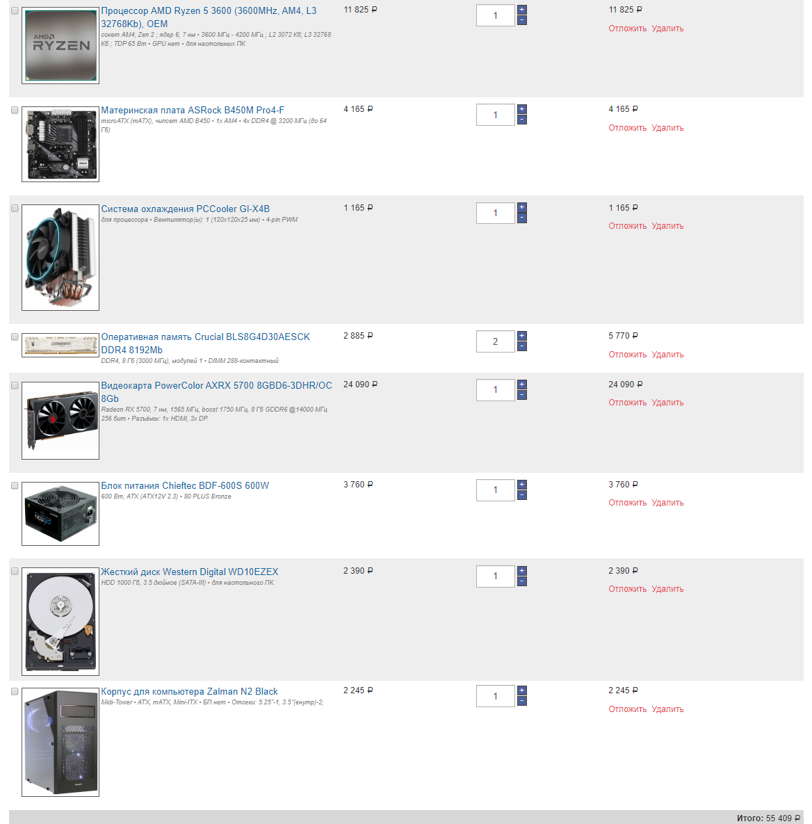 Итого: 59 874 р. Материнку можно ASUS TUF B450M-PRO GAMING питание и звук получше. =====================================================================