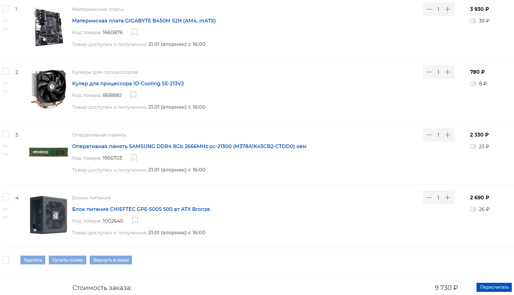 Доброго дня, прошу помощи с выбором комплектующих для пк. 1) 60 000 (+- 10 000) 2) г. Екатеринбург https://www.dns-shop.ru/catalog/17aa522 ... e-dlya-pk/ Вообще, не сильно принципиально с каких магазинов... 3) Ситемник и монитор 4) Указывайте для каких задач берётся сабж. а) Для игровых систем: Современны игры (Red Dead Redemption 2, Battlefield V, WOT) в) Планируется использовать для работы в программе (Базис мебельщик https://www.bazissoft.ru/service/system_requirements) 5) Не желательно (нет опыта) 6) - 7) - 8) Amd, Nvidia - Требования к корпусу: не большого размера (возможно размещение на столе) - Не обязательно что бы все светилось))) 9) -