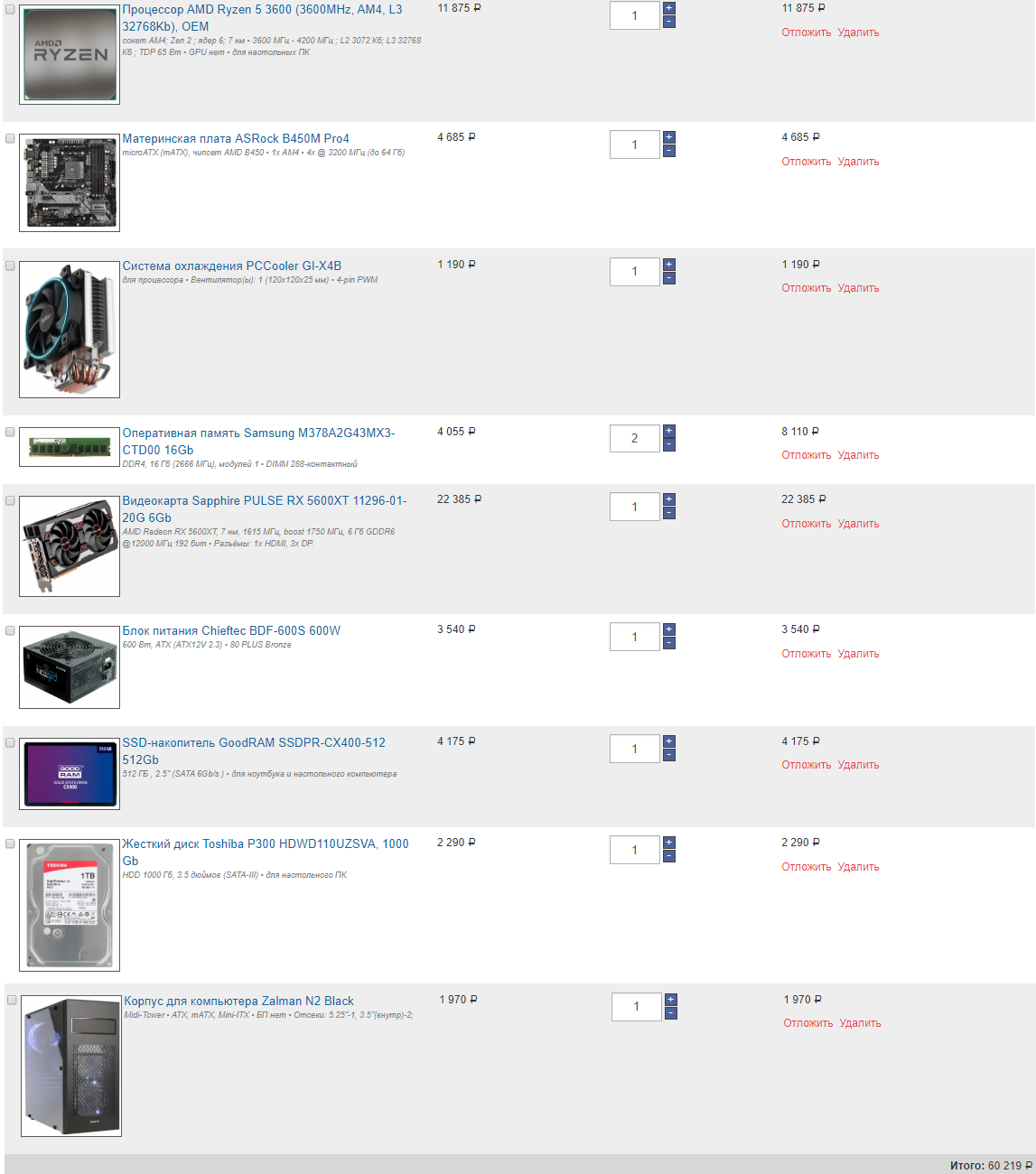 примерно представляю что можно собрать на AMD Ryzen 7 3700X + память 32Gb DDR4 3600MHz (2x16Gb) + Твердотельный накопитель 512Gb SSD Samsung PRO + блоке питания на 1000W с отстегивающимися кабелями cертификата 80 PLUS Platinum