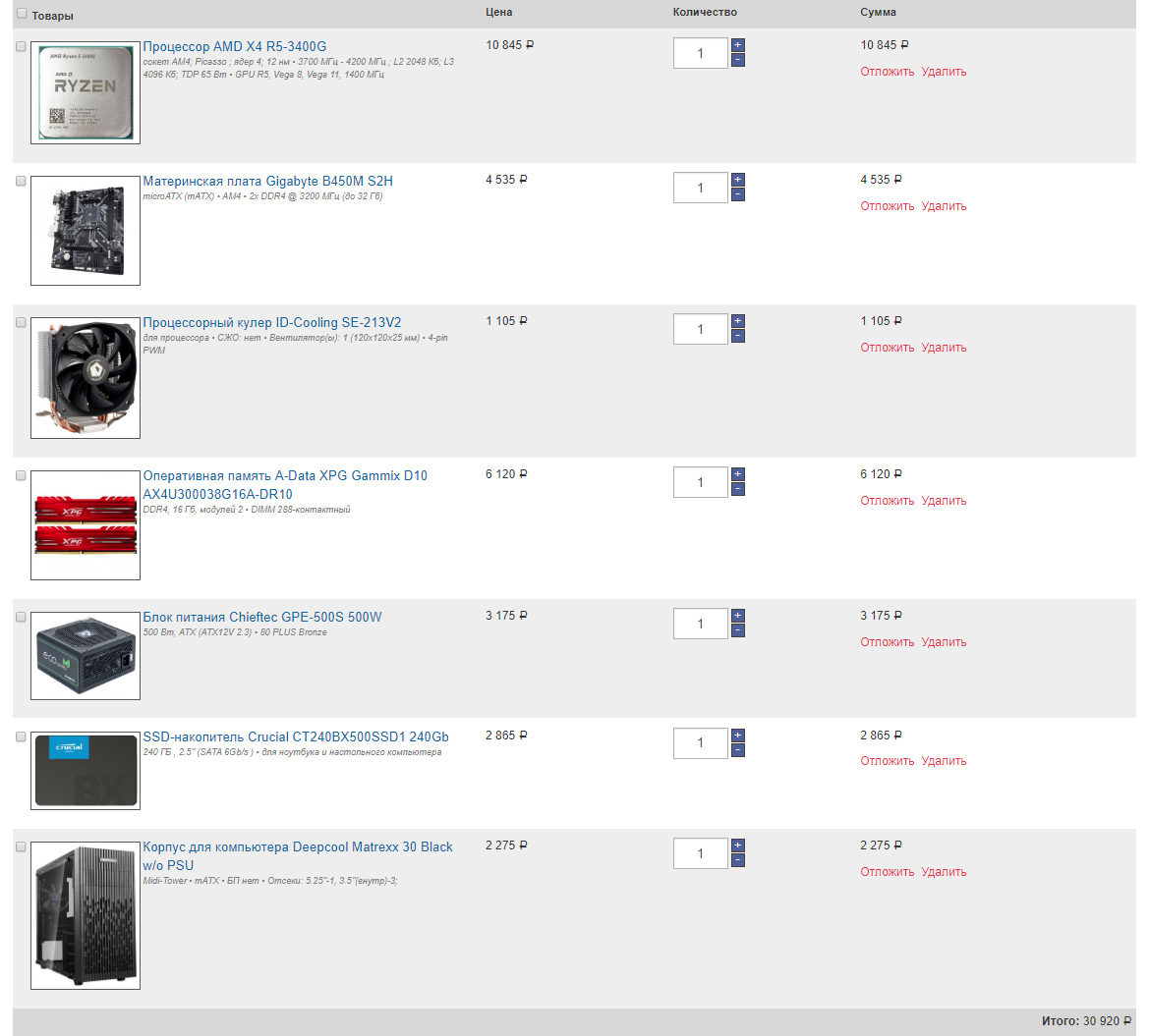 1. 25-30к 2. https://www.nix.ru/price/index.html в Москве 3. Только системник 4. Интернет и видео 1080 с ютуба для родителей 5. Нет 6. Нет 7. Нет 8. ССД, максимально тихий! , надежный и производительный 9. Накидал такой конфиг. На чем можно сэкономить или заменить???