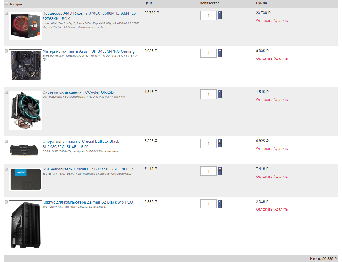 Здравствуйте! 1) Бюджет 55000 руб 2) Полный конфиг компьютера собираю в ДНСе 3) Собираю только системник. 4) Задачи: комфортная игра в FullHD (через HDMI) в игры на высоких настройках графики. Игры: Apex Legend, Battlefield 5, GTA 5 Online и пр. 5) Разгон будет, но автоматический, средствами материнской платы. Сколько посчитает нужным для стабильной работы, столько и оставлю. Сам лезть в разгон не собираюсь. 6) Апгрейд в ближайшие несколько лет не планирую. 7) Все комплектующие пойдут в корпус Zalman Z9 PLUS, оставшийся от прошлого компа. 8)... 9) Ссылка на сам конфиг https://www.dns-shop.ru/custompc/config ... 1d9d41122/