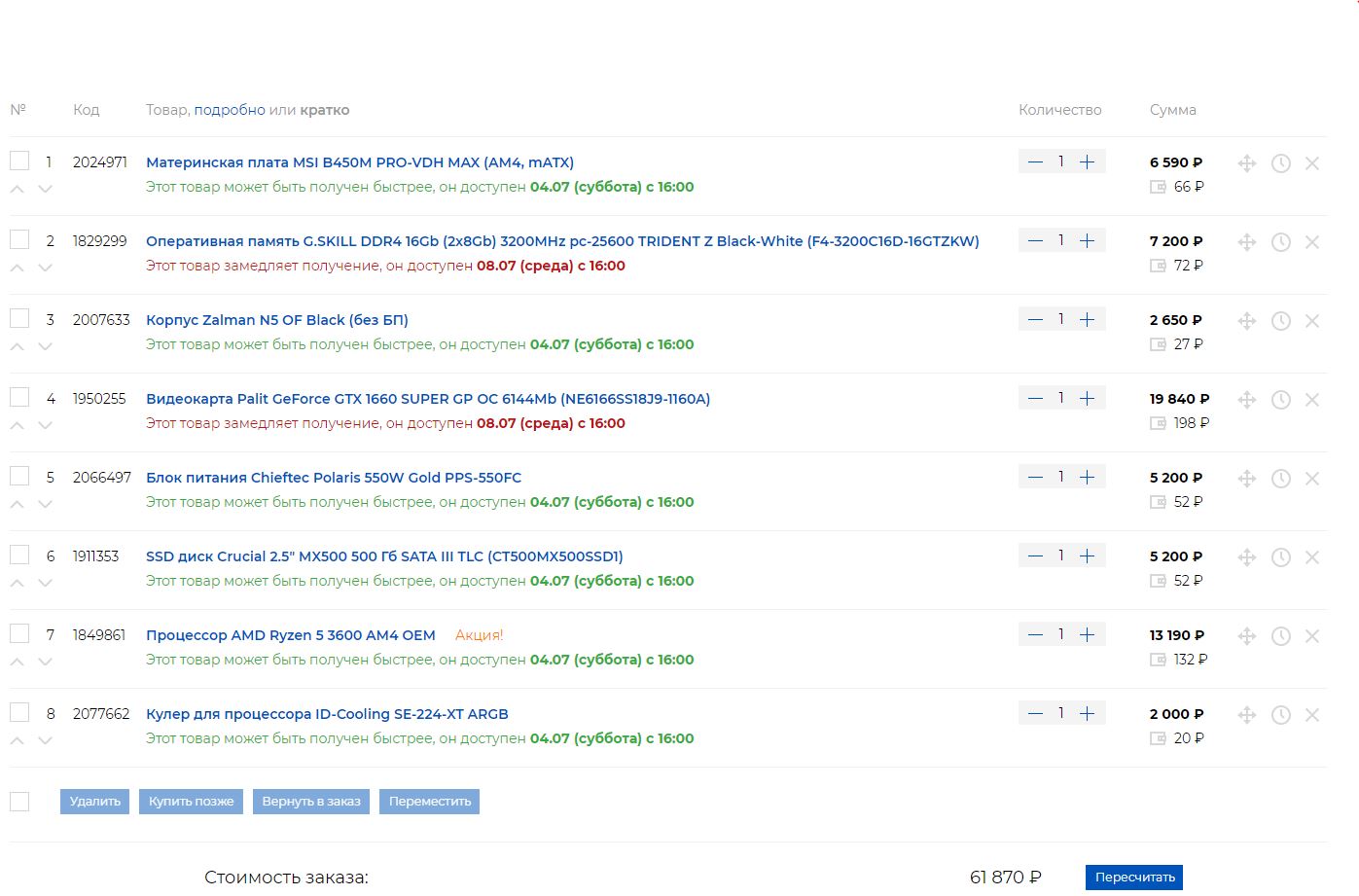 В этот бюджет GTX 1660 Super не влезает, а ты про GTX 1070. Почему не влезает. Тут два варианта. Покупаем материнку на H-чипсете или B-чипсете и забываем про разгон, сидим на стоковых частотах, но с видеокартой GTX 1660 Super или брать Z-чипсет и гнать память, но доплатить надо ~2300 р.