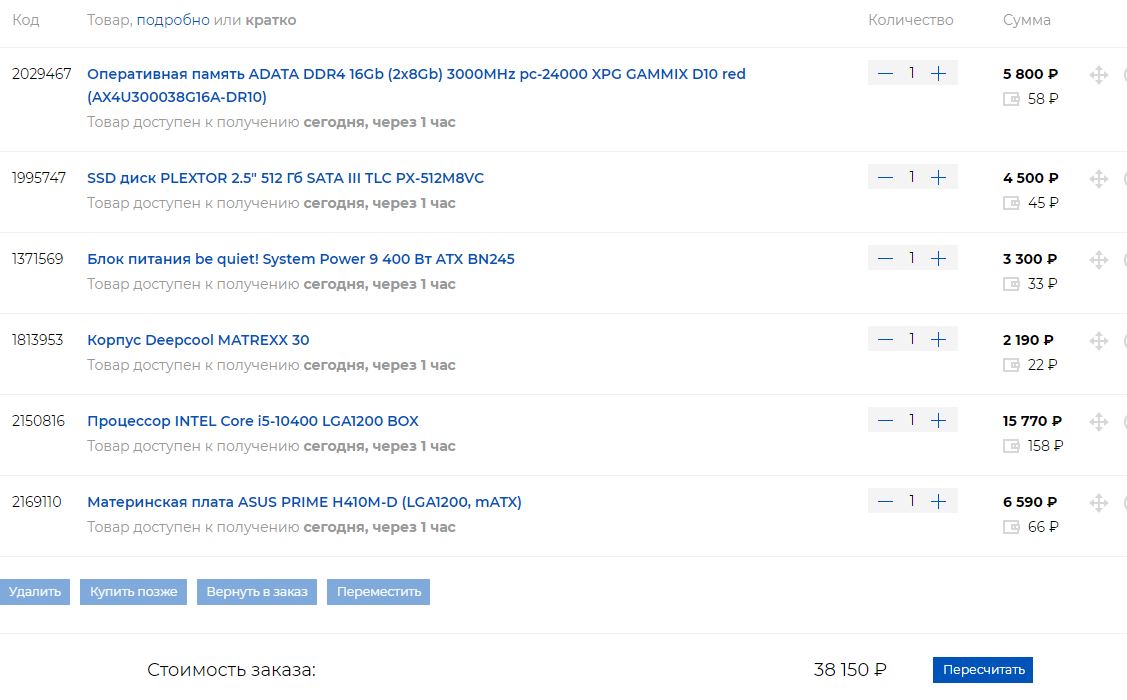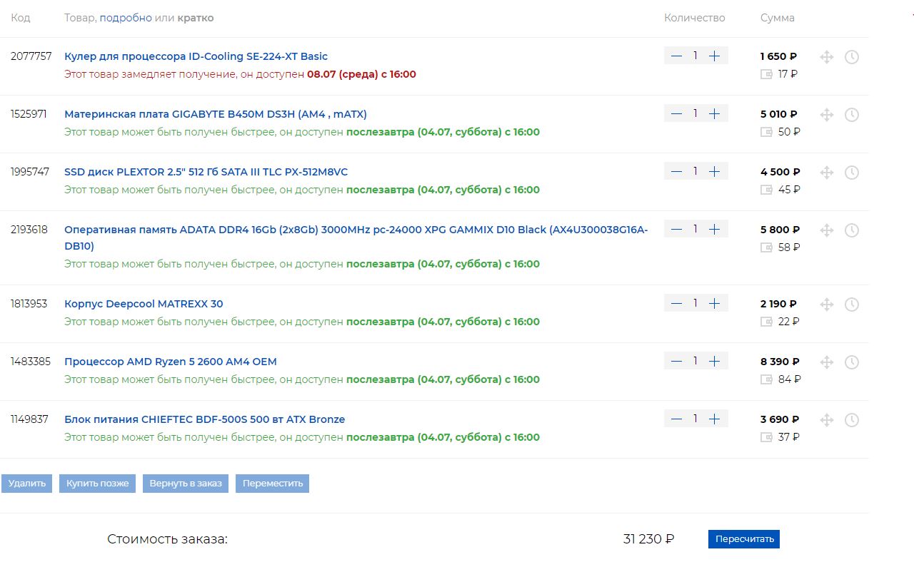 Доброе утро! Можете подсказать с конфигом ПК: 1) Бюджет: 50 000 - 55 000 рублей 2) Магазин: dns, ситилинк, onlinetrade. г. Кострома 3) Нужен системник + монитор 4) Компьютер для игр. 5) Скорее всего разгонять не буду. 6) Беру лет 5-7