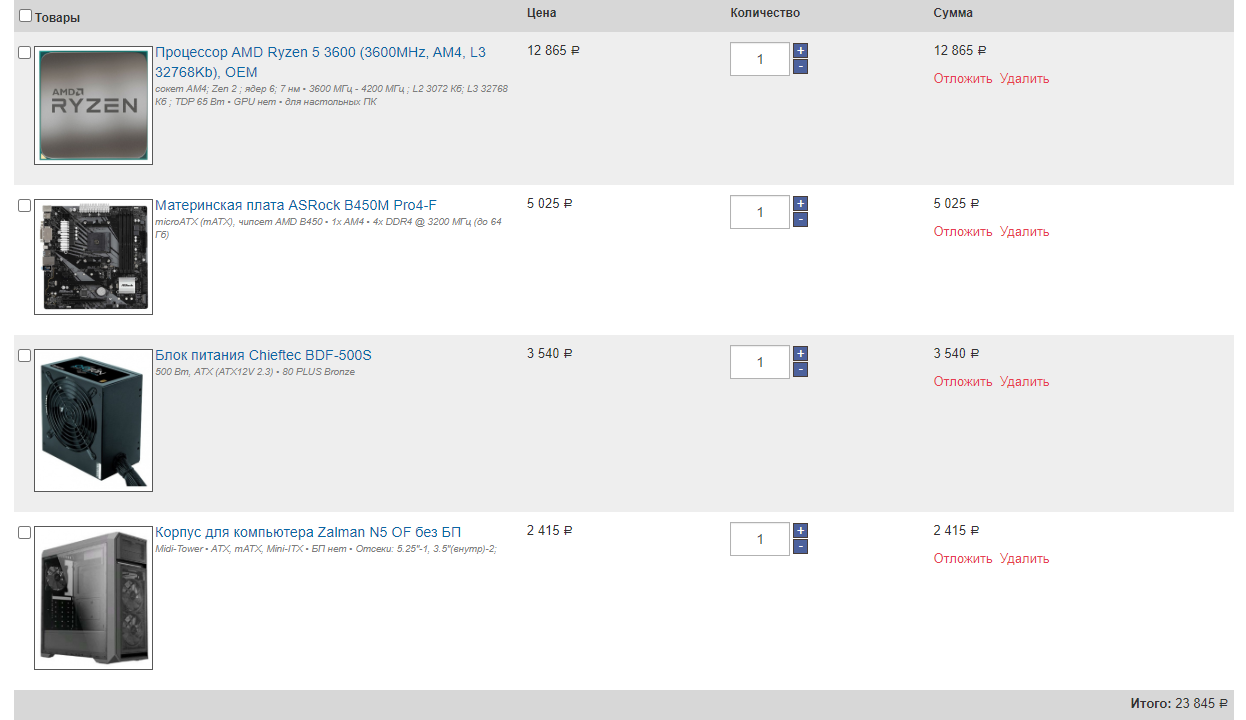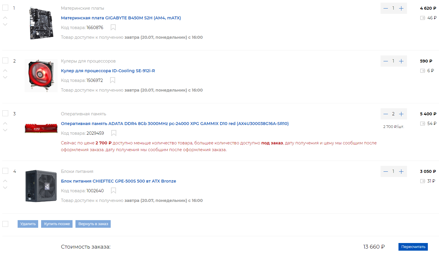 Всем привет! Родственники попросили собрать комп для серфа и чтобы "более-менее" (я думаю танки на высоких) 1. 25000-30000 р. 2. г.Тула. Днс, Онлайнтрейд, Никс и т.д. В принципе любой крупный и не очень ритейлер в моем городе, где можно забрать сразу. 3. Только системник. (Ну если ценник получится около или менее 25000 то возможно + более-менее монитор) 4. Серф и пусть будет танки на высоких. 5 нет 6.нет. (возможно отдам потом 7950 или 580 если сам проапргейжусь) 7. Есть 7950. 8 да вроде нет. 9. Набросал в ДНСе https://www.dns-shop.ru/custompc/config ... af4b34b06/ бп скорее взял бы такой https://www.onlinetrade.ru/catalogue/bl ... escription
