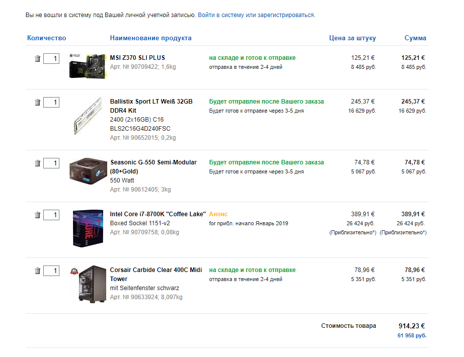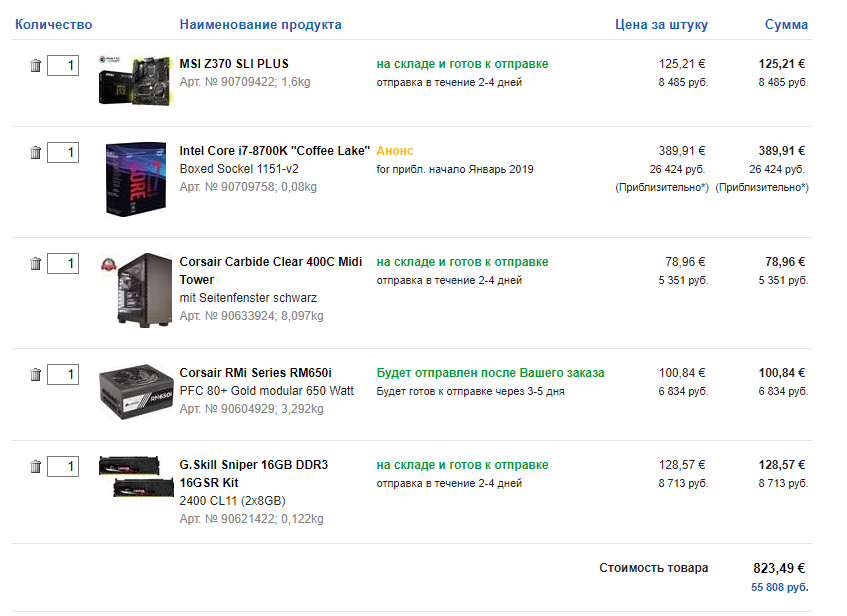 Он мне получился с доставкой ровно столько же, сколько стоит в Москве. Плюс ещё доставка из Москвы. Ладно, корпус не главное. Спасибо большое за советы