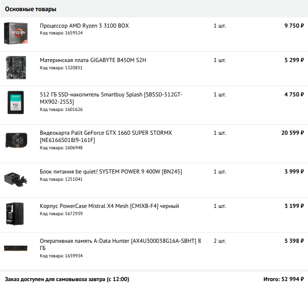 EaScreamer МП не держит частоту в 3000Mhz, думаю, предусмотрели при выборе? Блок питания так себе вариант, конечно. Плюс корпус сюда Хотя бы Deepcool Matrexx 30, стоит 2350 р. Итоговая стоимость сборки 46 000 р., сюда же мышка с клавиатурой, пусть рублей 500 р. будет, офисная ерунда...какой монитор вы собираетесь за 3500 р. брать?