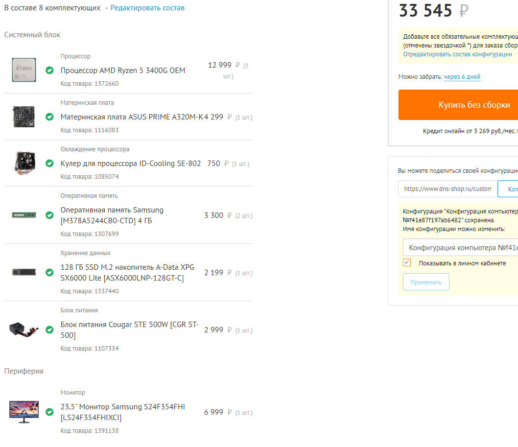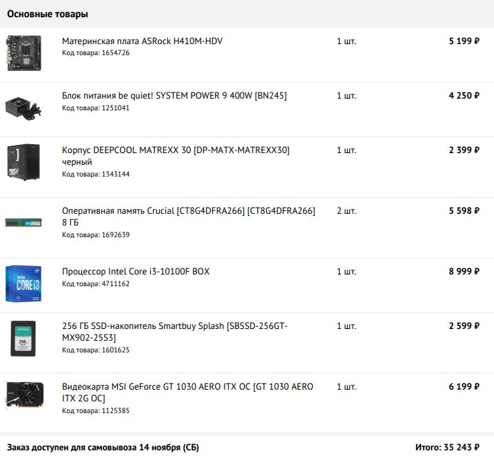 leschok ну, если с видеокартой, то в среднем на 6/7 тысяч дороже выходит за видеокарту уровня GT 1030, она мощнее, чем встройка от Intel выйдет. Т.е. в сборке меняем на Core i3 10100f BOX + видеокарту GT 1030, от MSI Aero, например. Можно ещё удешевить и вместо SSD на 512Gb взять на 256Gb той же фирмы и отыграть 1200 руб. По итогу получить примерно так: