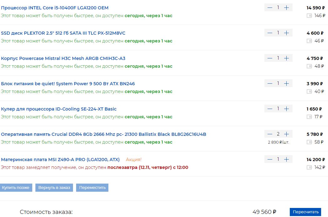 Добрый день. Нужен только системный блок, бюджет до 50-58 тыс. руб. г. Москва, магазин в принципе любой Разгон не интересует. ПК для игр WoT, CoD Black Ops Cold War Накидал в topcomputer конфигурацию. Посмотрите может что-то изменить или улучшить?