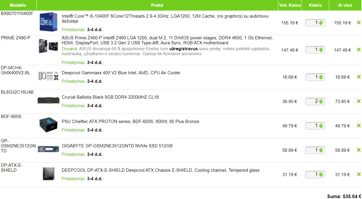 Добрый день, надо накидать комп коллеге: 1. 1000 евро, меньше - лучше. 2. К сожалению оба магазина дают цены в евро и имеют сайты только на литовском, но Яндекс переводит без проблем. Надо брать всё в одном или всё в другом так как они же и будут собирать: 2а. http://www.skytech.lt/kompiuteriai-komp ... rp=0&pav=0 В опциях показа надо выбрать " На складе+Atvykstancias" 2b. https://www.kilobaitas.lt/Pub/default.aspx?L=LT&C=EUR 3. Только системник 4. Монитор Samsung C24F390FHU 1920x1080. Комп используется для общих целей, игры - Minecraft, Among Us, Cities Skylines. 5. Нет 6. Нет 7. Нет 8. Нет