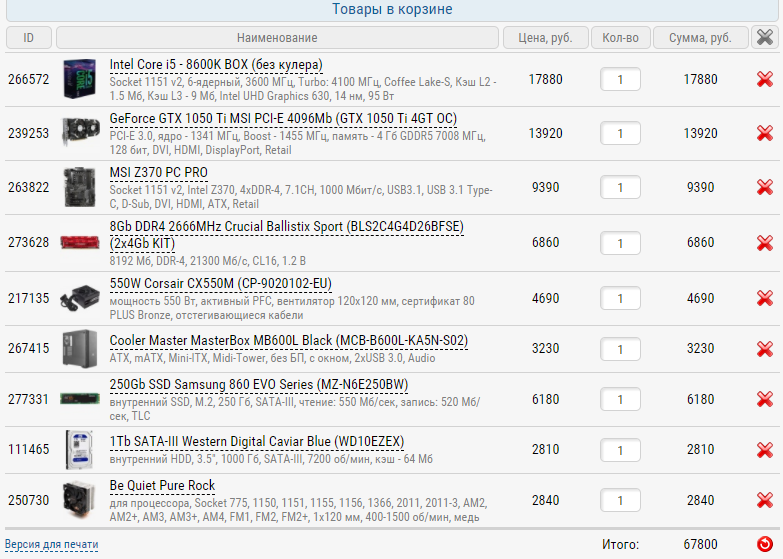 Всем привет! Помоги собрать системник. 1. Бюджет 60-65к 2. Магазин DNS или любой хороший магазин Мск и СПб (доставка в города сейчас у всех почти есть). 3. Только системник, без жёсткого (есть в наличии свой) 4. Для современных игр, типа PUBG, GTA BF, Far Cray и так далее, с целью играть на высоких настройках. Монитор 24", предполагаемое разрешение 1920*1080 5. Разгон не планирую 6. К концу года докупить память, до 16 Гб в общей сумме. 7. Нет 8. ssd хотелось бы внутренний поставить, через порт М2, на 128Гб. Проц не ниже i5, ВК не ниже 1060. Корпус хотелось бы обычный типа DeepCool Smarter (цена 1800).