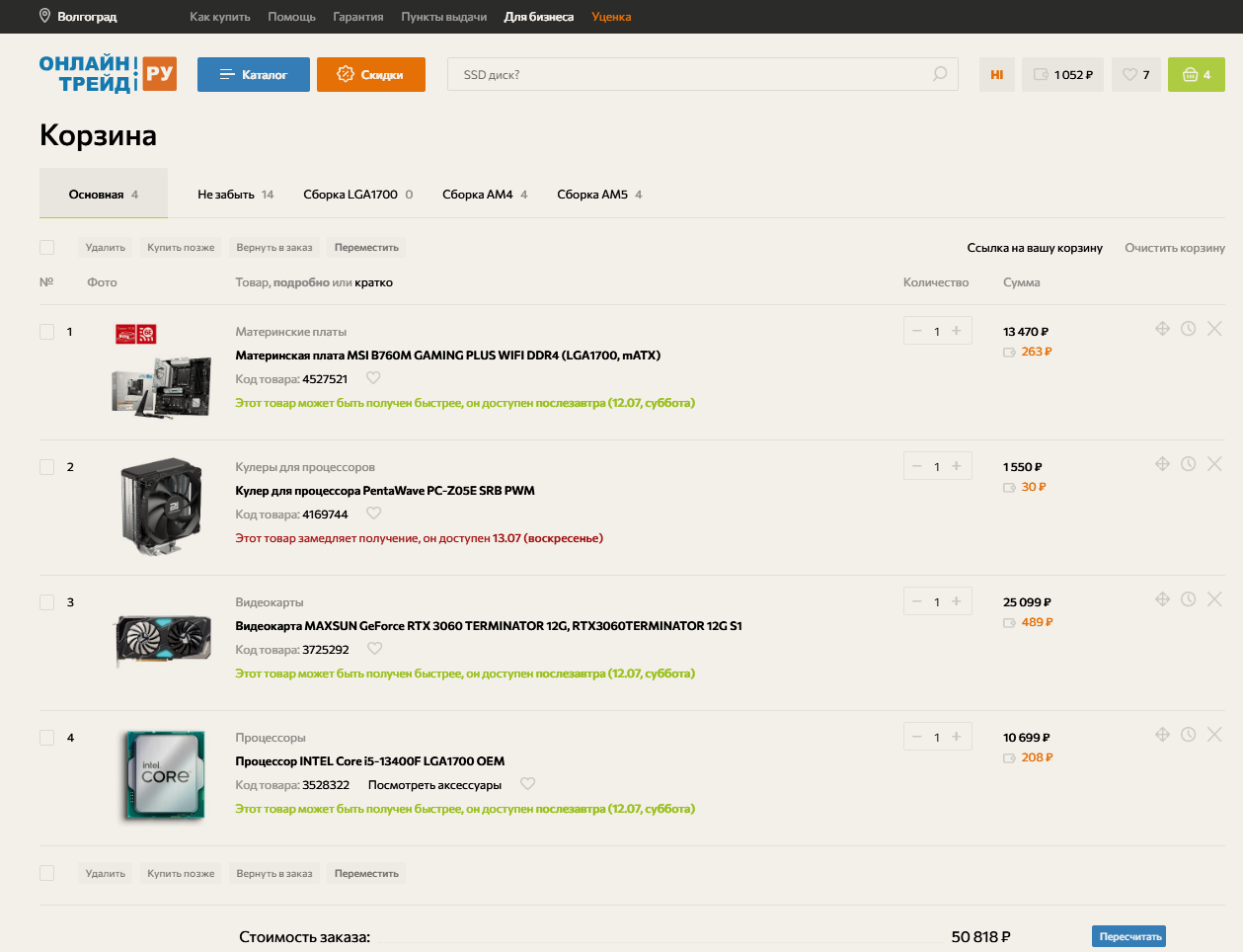 Сборка с ВК на 50 тыс.р. с учетом имеющейся DDR4
