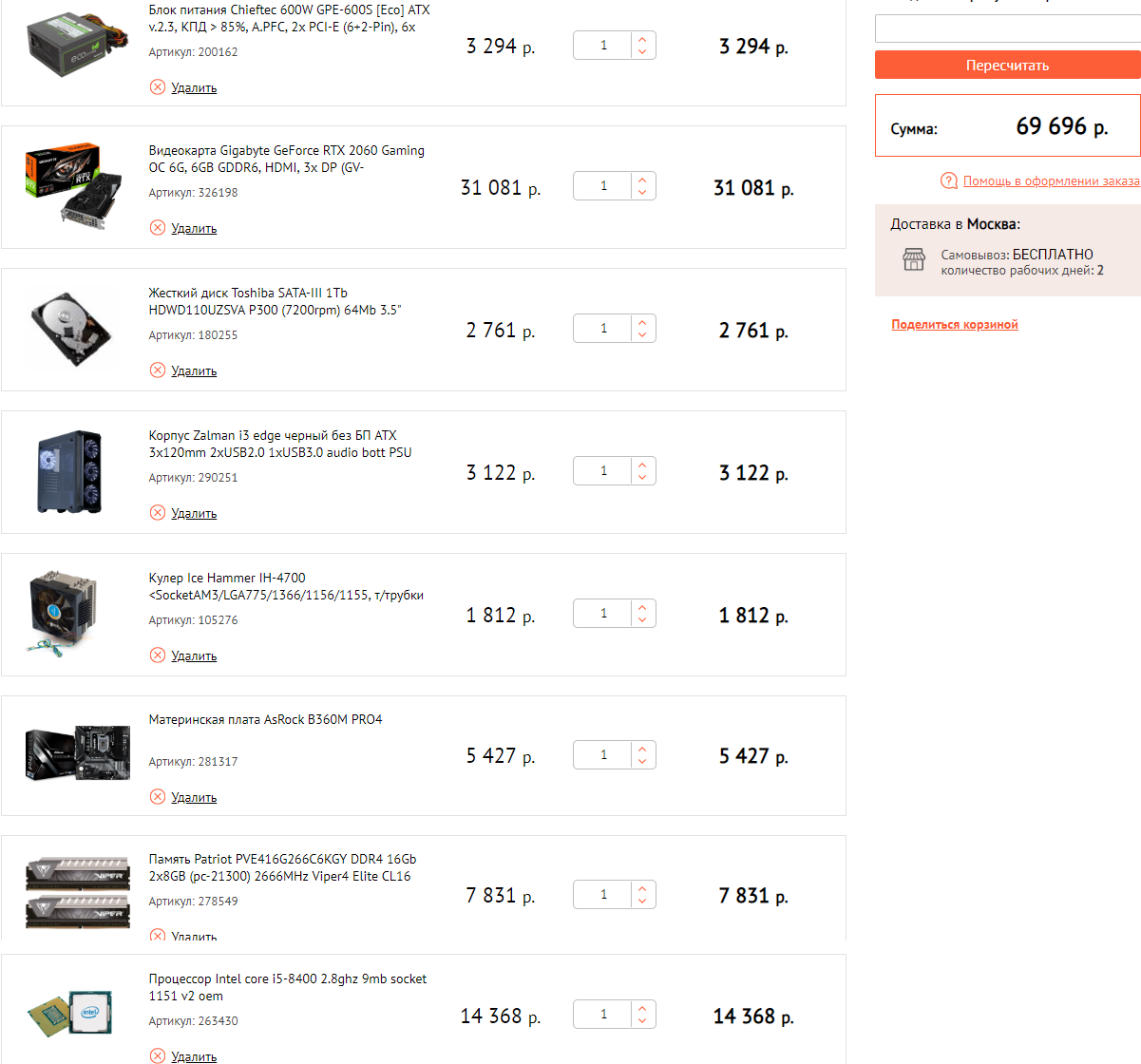 Добавлено спустя 4 минуты: satagood Секундочку . У вас уже есть : "Nvidia GTX 1080 - 2 штуки, блок питания (>700), кулер под AMD (с переходником), системный блок" ? А системный блок это как я понимаю корпус?