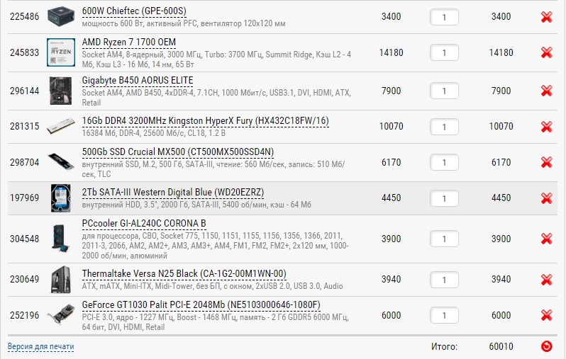 Я же изначально написал, что хочу собрать комп на базе AMD Ryzen 1700 !