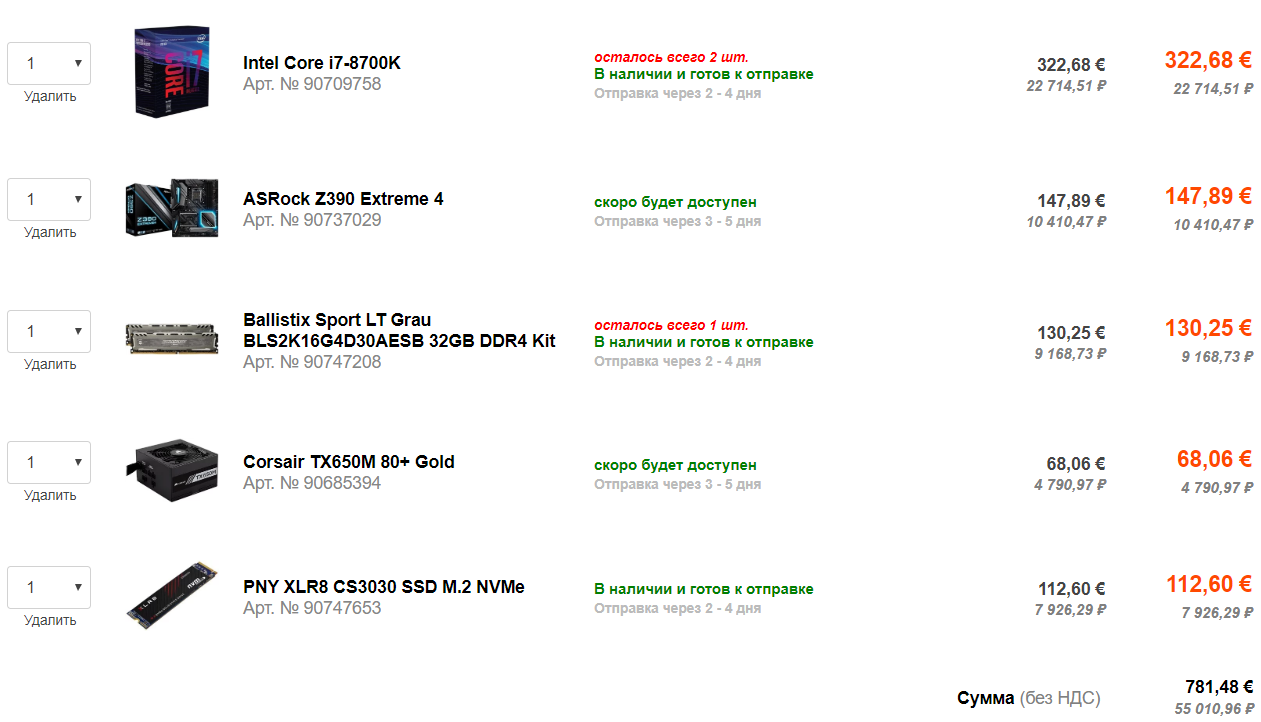 kimsab Цены у вас конечно лютые. Пройдусь немного по вашей конфигурации: материнская плата слишком хилая для такого процессора, а вот кулер был избыточный, ссд на 480 Гб - этого маловато, сейчас игры весят по 50гб и выше, надо было добавить ещё hdd. Клавиатура за 6 тысяч (дороже материнской платы) - так себе решение.