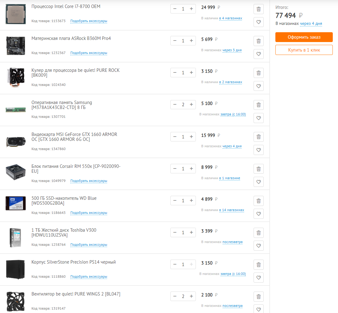 bookmaker спасибо. Но я упустил 1 важный момент. Не акцентировал, что покупаться все будет исключительно в регарде и собираться там же. При пересчете на регард сборка выходит за рамки бюджета. Если не сложно, подберите, пожалуйста еще раз.