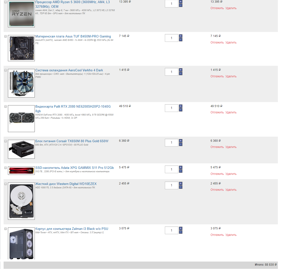 1) 75-80 2) Москва - Ситилинк, Днс, еще рассмотрю другие магазины где все есть и соберут 3) Что собираетесь брать: - Только системник 4) Игры - КС, Апекс, БДО, БФ. 5) Возможно 6) Нет 7) Нет 8) Предпочитаю Ryzen 3600 и карта Nvidia 9) Набросал пару вариантов: