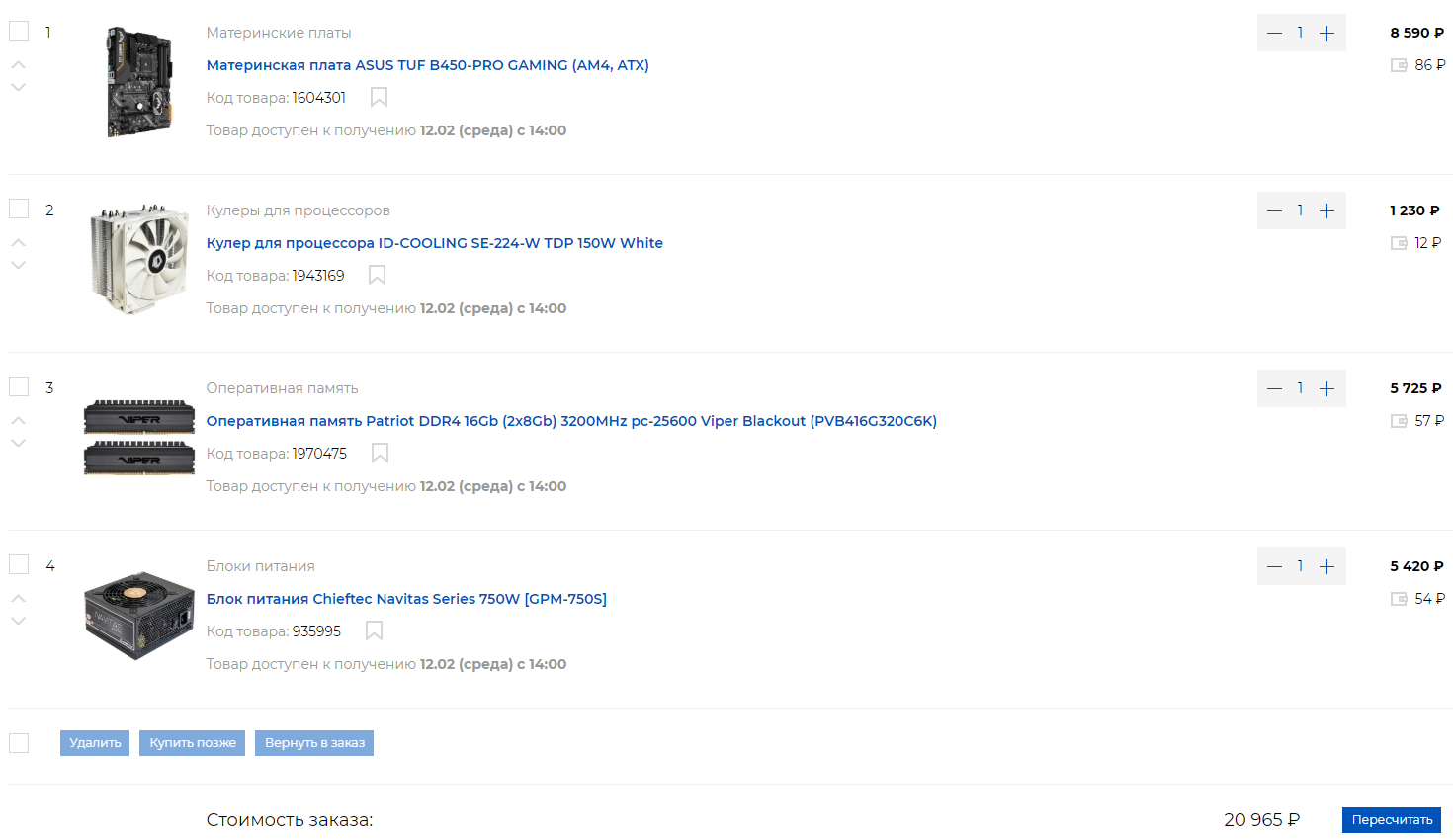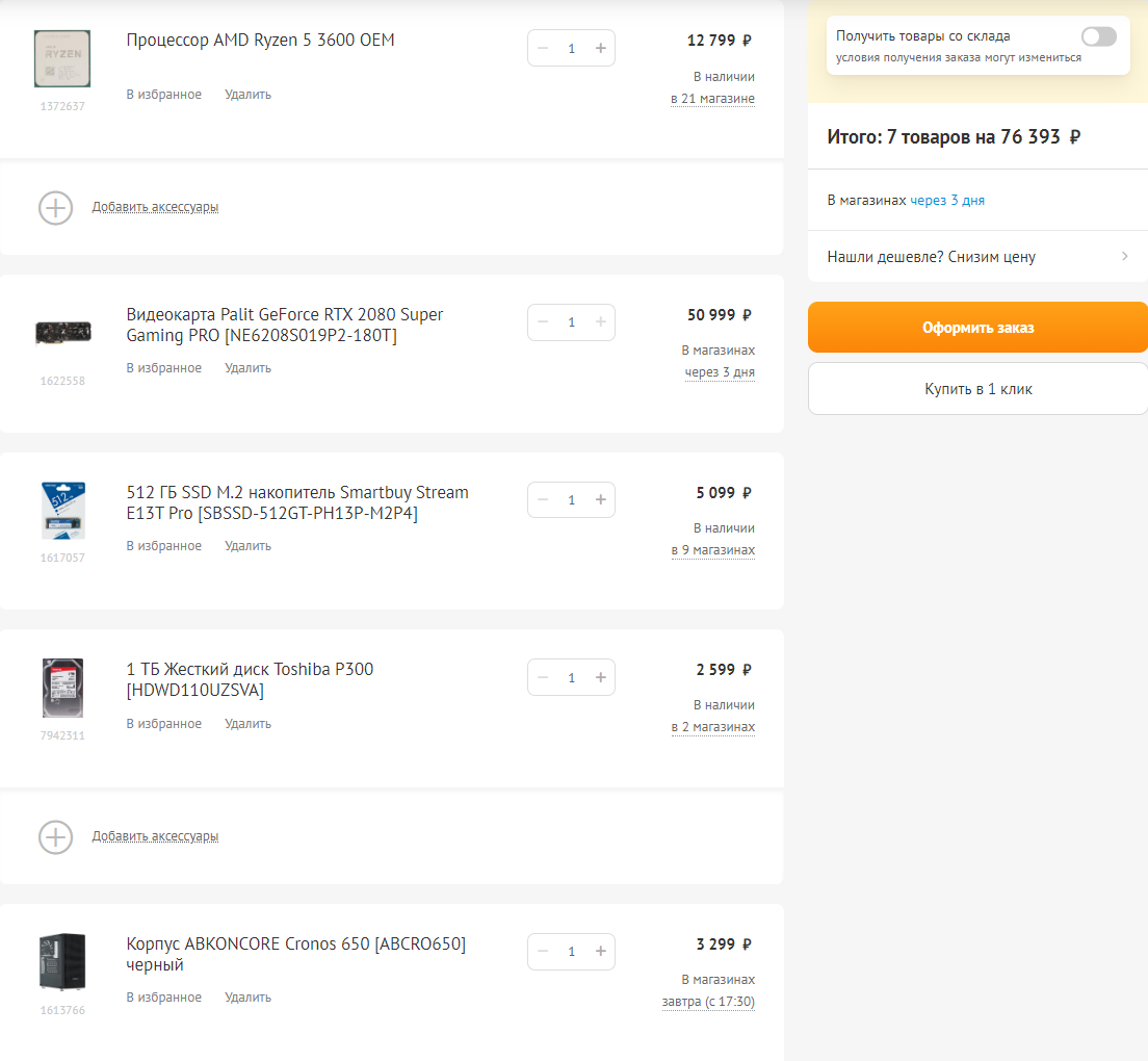 Можно скомбинировать заказы с местных магазинов, во-первых экономия, во-вторых можно подобрать то, что более соответствует цене/качеству или за те же деньги взять более лучшее железо.