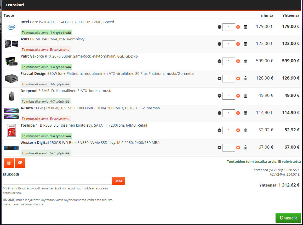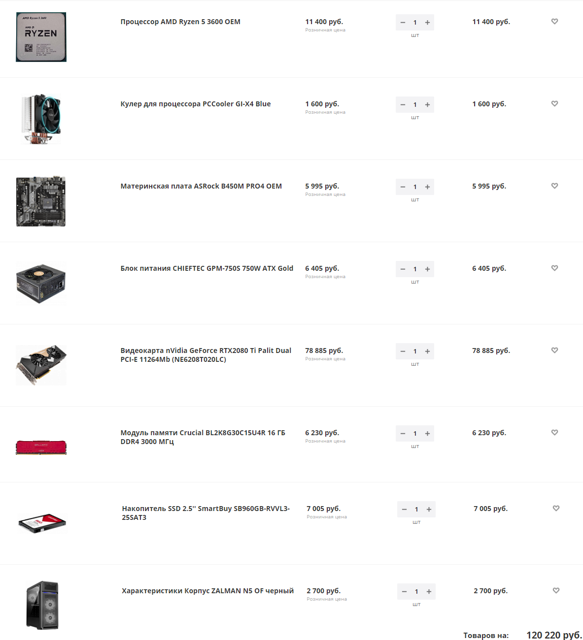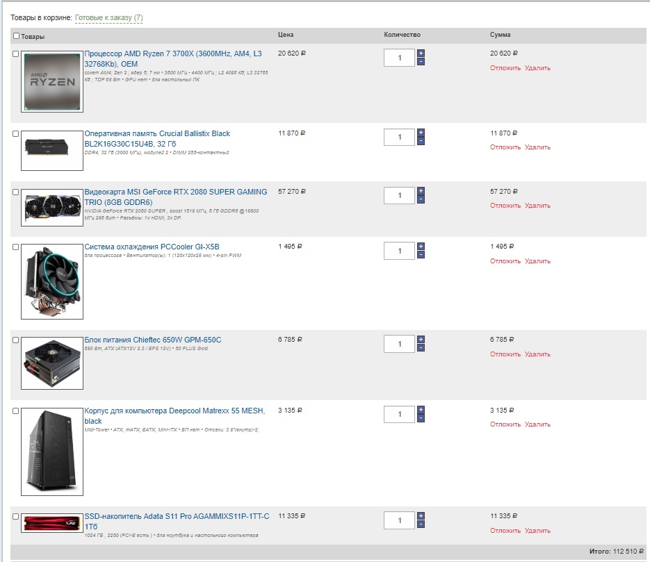 sp6891 как вариант можно так. Только блок питания я бы посоветовал взять в другом магазине: Corsair RM650x Хотя для FullHD RTX 2080 Super уж совсем много, можно взять RTX 2070 Super, будет дешевле.