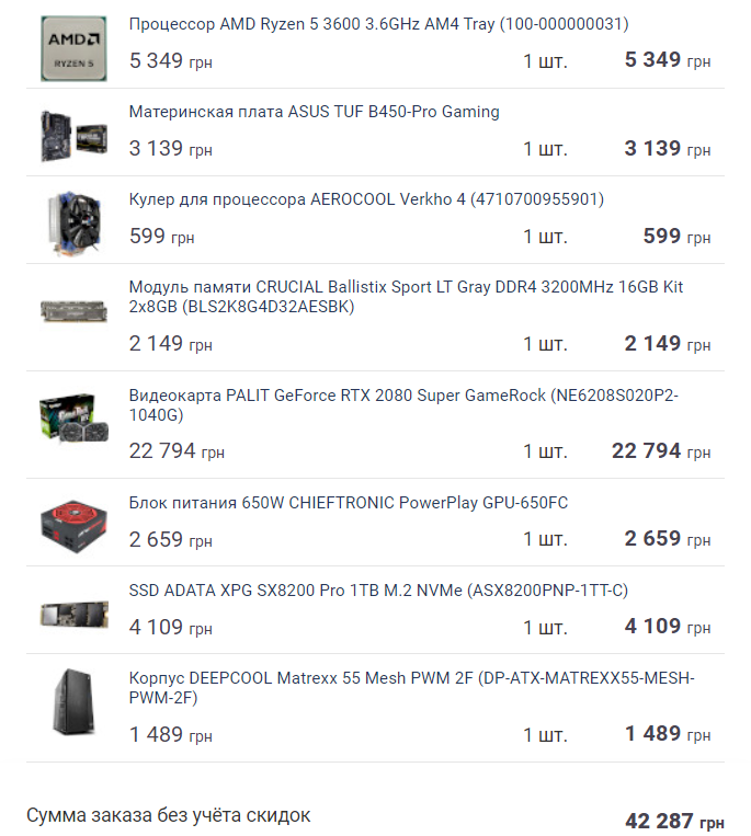 1) Бюджет: 43 000 грн \ 115 000 рублей \ 1 550$ 2) Магазин: https://rozetka.com.ua/ Город Одесса 3) Только системник 4) Домашний ПК, в основном для игр. 5) Без Разгона системы. 6) Без апгрейда системы в ближайшие 6 месяцев. 7) Сборка с нуля 8) Требования, уточняйте: Проц AMD В бюджет помещается 2080s от palit серия Game Rock, но что-то куча отзывов что последние версии с плохим охлаждением и в целом душа к этой фирме не лежит. 9) Наброски конфигурации ПК