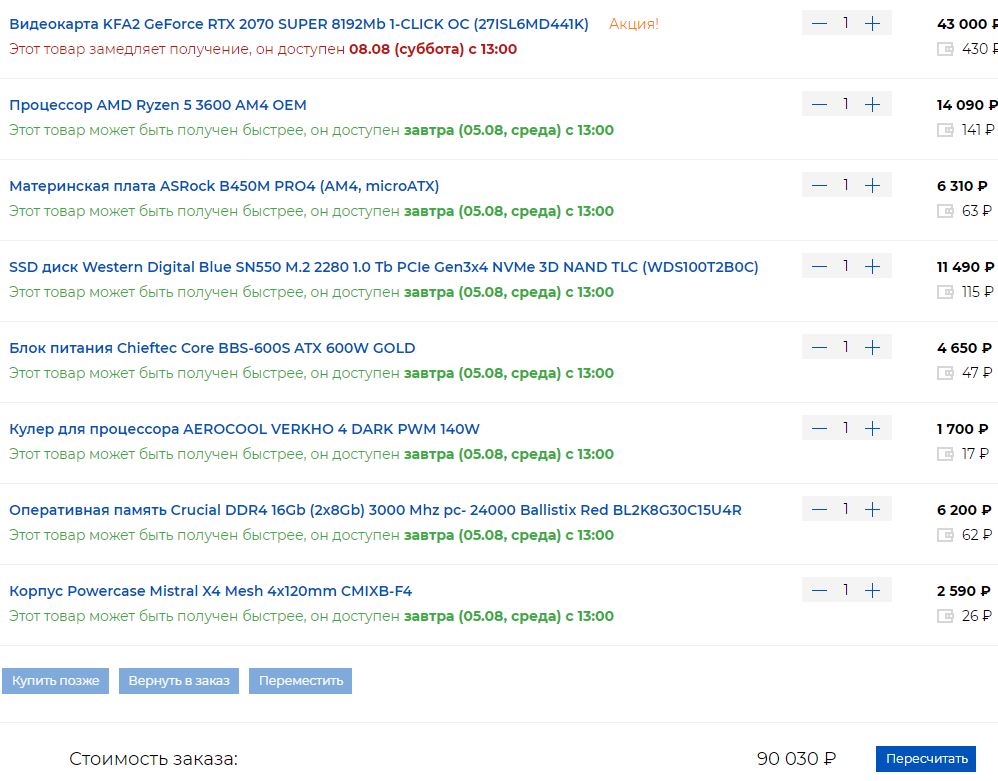 1) 70-80к 2) https://www.nix.ru/ Москва 3) Только системник (без видеокарты и ssd,hdd) 4) Для игровой системы:- 1920*1080, Монитор Samsung C24F390FHI, MEGA DCR - Action / RPG / Adventure / 3D / 3rd Person б) Обычные колонки Sven (радио, разная музыка) 5) Разгон не планируется. 6) Апгрейд не планируется 7) Palit 1060 6гб, ssd 2шт по 240гб, WD 3гб 8) Тихая холодная система. 9) Сборка