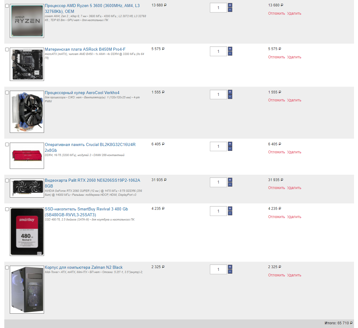 zoom_18 дело в том, что цена 60тр на данный комплект получается при покупке по акции "выгодные комплекты", где дают скидку 10% на комплект из процессора, мат платы, оперативки, корпуса и SSD из ограниченного списка. и к сожалению там нет моделей на 1Tb формата M.2 NVMe, а только более медленные 2.5" SATA - Samsung 860 EVO [MZ-76E1T0BW] за 9359р, WD Blue [WDS100T2B0A] и Samsung 860 QVO [MZ-76Q1T0BW] по 7829р.