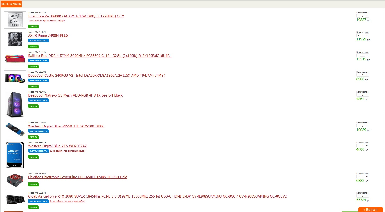 messiah14 можно и так сделать, просто собирал в одном магазине для удобства. При одинаковой цене ЦП + в/к я бы брал, конечно, GTX 2080 Ti вместо GTX 2080 Super. Блок вывезет без проблем.