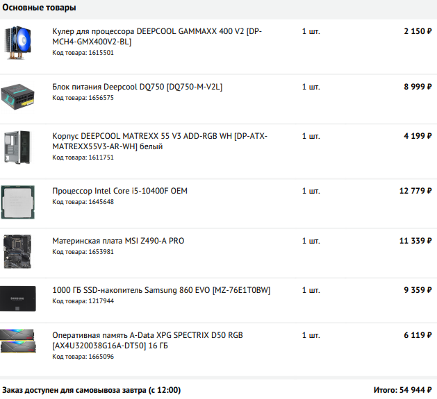 1) 70-80к 2) Москва (днс, регард, плеер, олди, там_где_дешевле) 3) Системник (без видеокарты, ее докуплю потом, пока посижу на своей ASUS DUAL-GTX1060-O3G) 4) Указывайте для каких задач берётся сабж. а) Игры и иногда работа (фронтенд разработка) 5) Нет 6) Планирую докупить видеокарту 3070 или 3080 в следующем году, как появится возможность 7) По сути имеется видеокарта, на которой временно посижу и два ssd samsung evo 860 на 250 и 500, на которых тоже могу временно перекантоваться, что потом уже добрать m2. также имеется монитор dell u2720q 8) Хотелось бы, чтобы не сильно шумел 9)