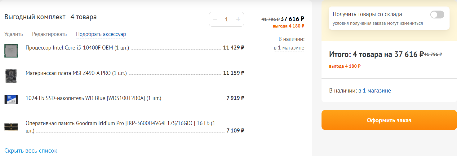 Можно в DNS через "Выгодные комплекты" собрать cвязку 10400F + Z490, будет скидка:
