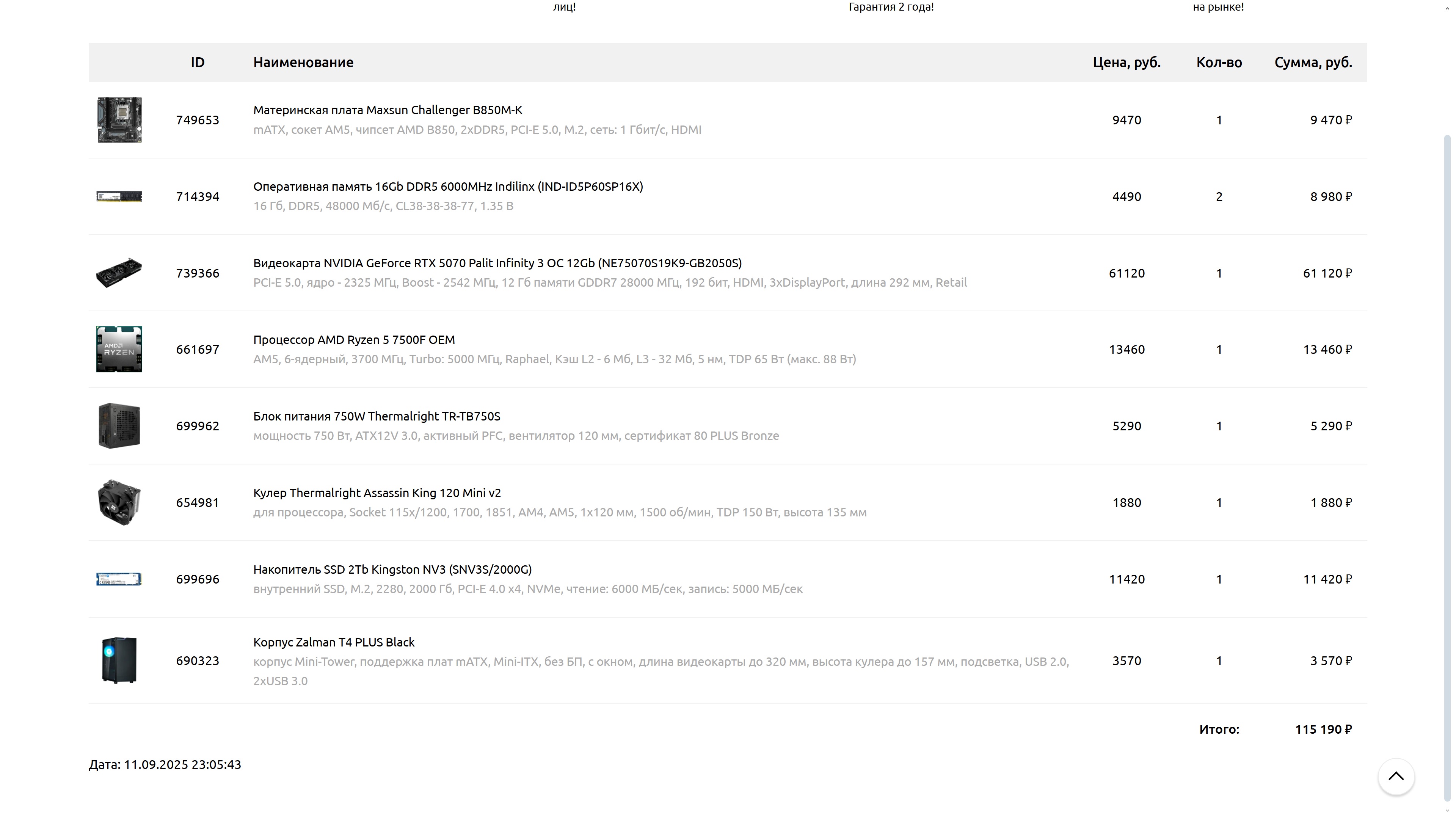 Если драться за копейки, то можно собрать с Ryzen 5 7500F + MSI PRO B650-S WIFI, кулер взять проще, а RTX 5070 заказать с ВБ за 50.8 тысяч. "Лишние" деньги потратить на блок питания с 12VHPWR.