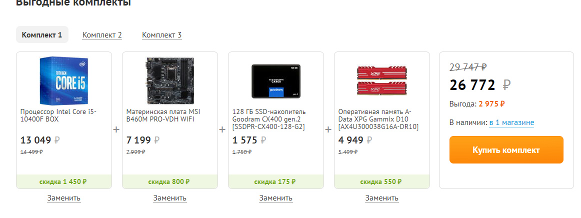 Попробуйте, не через technopoint.ru выбирать выгодные комлпекты, а через DNS-SHOP, тогда выбор будет чуть побогаче, приплюсуются местные магазины, но внимательно сверяйте цены, раньше в ДНС шопе некоторые позиции могли стоить на несколько сотен дороже, чем в технопоинте: Вот, еще раз ссылка =>