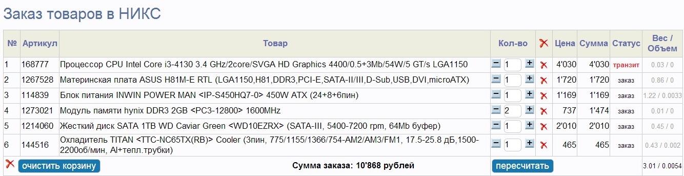 Привет всем! Подкинули задачку, имеется ящик 2000 г.в. и 10к рублей. Логично предположить, что реально совместимых внутренностей внутри - сам корпус, остальное всё попилить на брелоки))). Накидал системку, может что поменять, пока не поздно? PS: магазин nix96.ru