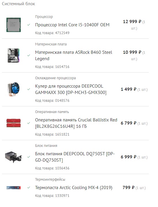 Да я неполную сборку заскринил) Извините. ОЗУ Crucial Ballistix Red [BL2K8G26C16U4R] 16 ГБ, а то термопаста. Вот полный конфиг. Эта сборка то 38к, то 40к.