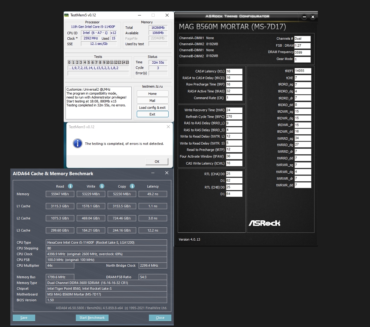 Купил i5-11400F + MSI MAG B560M MORTAR прошил биос включил профиль 1 тайминги конские Надо как то память настроить У интела есть типа такой программы DRAM Calculator for Ryzen для настройки ?