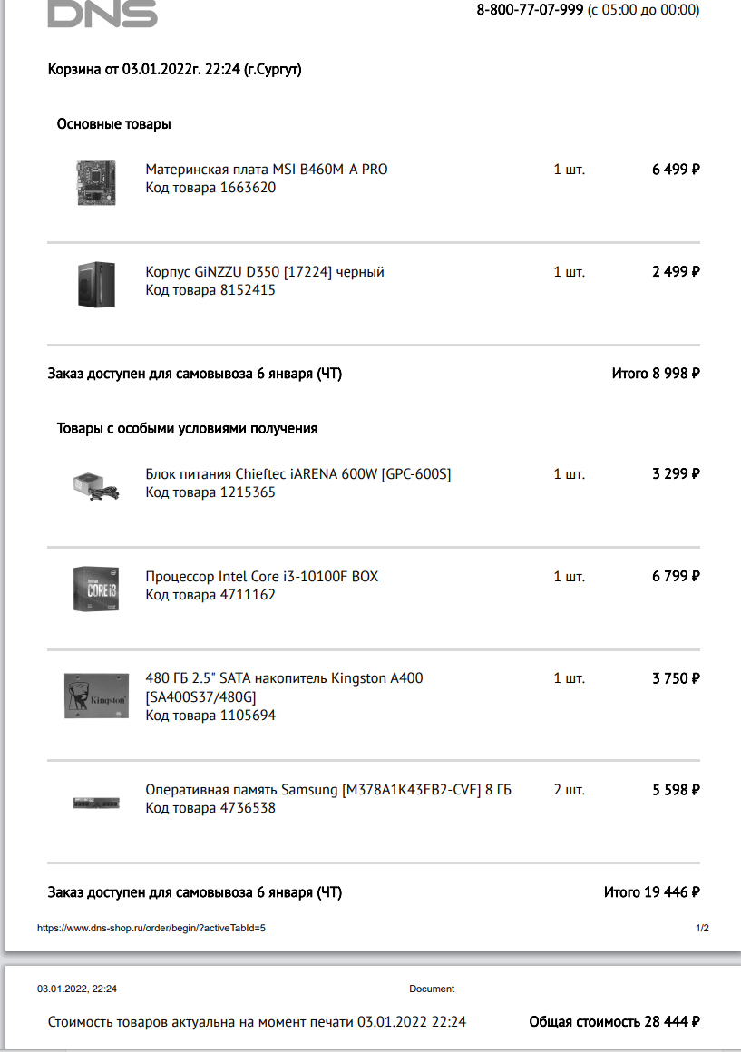 1. Бюджет на апгрейд 25-30к 2. Сургут, ДНС. 3. Серфинг, ворд, просмотр фотографий, игры типа: танки, самолеты, корабли, иногда фифа. 4. Осталось от старого SSD, HDD, 1060 видяха. 5. Разгона не будет. 6. В будущем будет смена видеокарты. 8. Вот набросал примерно (добавил еще один ссд, хочу с хдд туда закинуть игры. тот ссд что есть сейчас - он под систему) ну и думаю может все таки взять на h470 чипсете например ASUS PRIME B460M-A R2.0 или не стоит? :