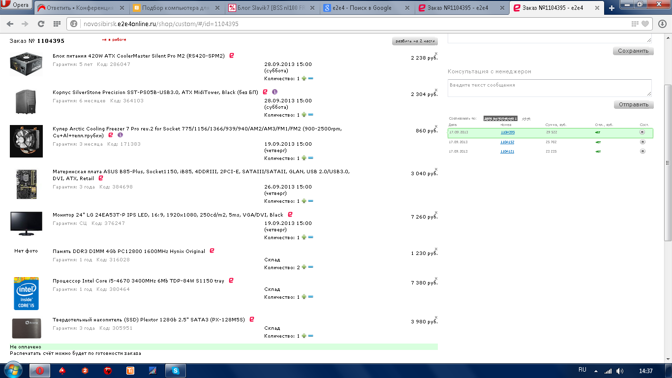 П. С. SSD возьмите лучше в ITbox, там длиннее гарантия. Тогда и другие позиции смотрите там же, можно будет сэкономить пару копеек разделив заказ на два магазина.