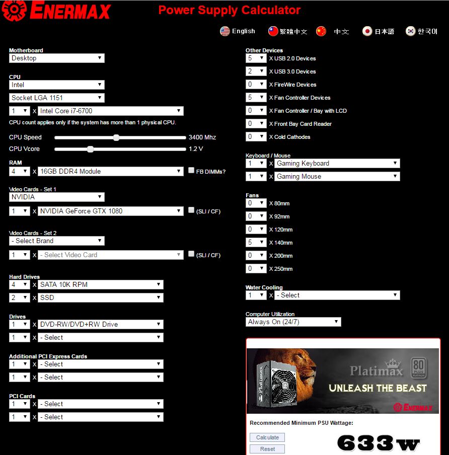 Muxeu91 Эти калькуляторы от балды считают, сильно завышают. Например, реальное потребление ASUS STRIX GTX1080 в пике всего 200W: