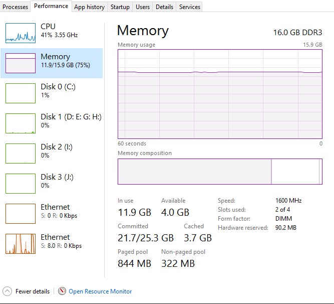 И? Вполне возможно, Винда просто закэшировала в память 10 гигов с диска: как только памяти станет нехватать, весь этот мусор будет убран из оперативки, и появится куча свободного места.