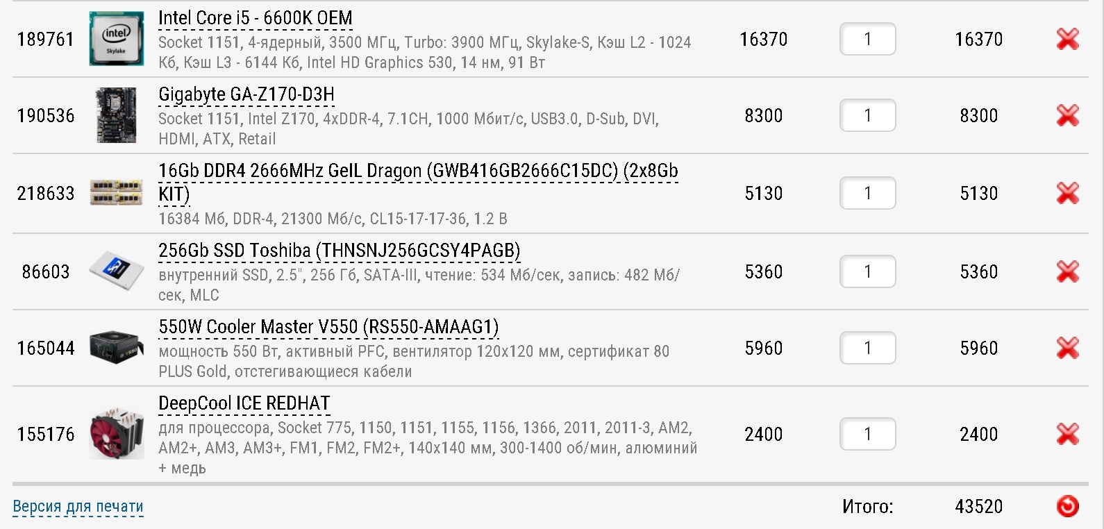 я вижу ASRock Z170A-X1 / 3.1 ~ 8к ati rx480 ~25к процессор ??? инженерный 6400t? 16 gb не знаю от кого брать питание RM550x ~7к охлаждение ~4к ssd 120-250gb ~5-6к корпус eatx/atx с авито