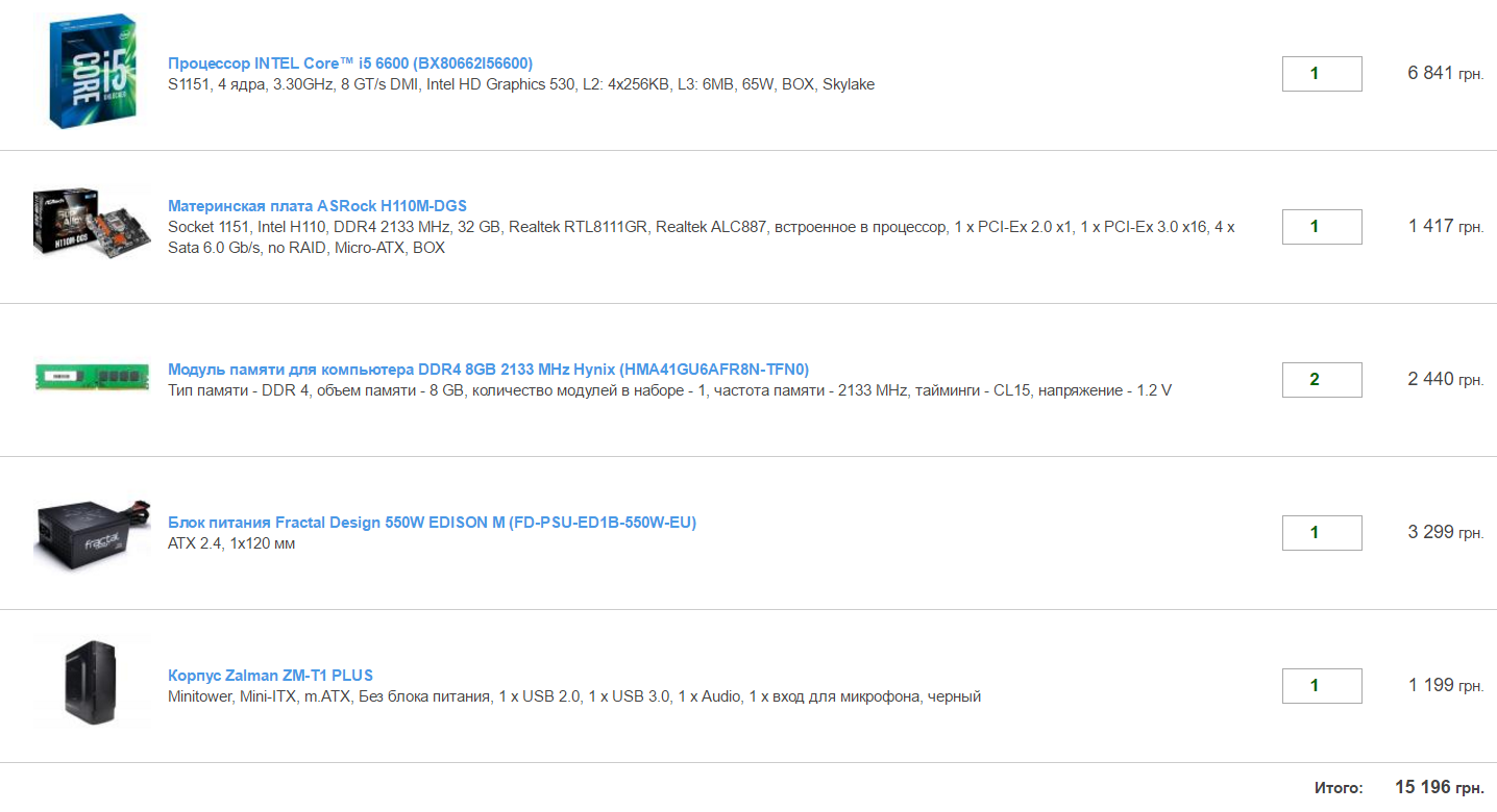 SlavicUnion, Krasovskiy24, Rm76, либо 6600 + H110M материнка - без разгона, либо 6400 + Z170 - под разгон по шине (6500 будет ничем не лучше), либо 6600K + Z170 - под нормальный разгон множителем.