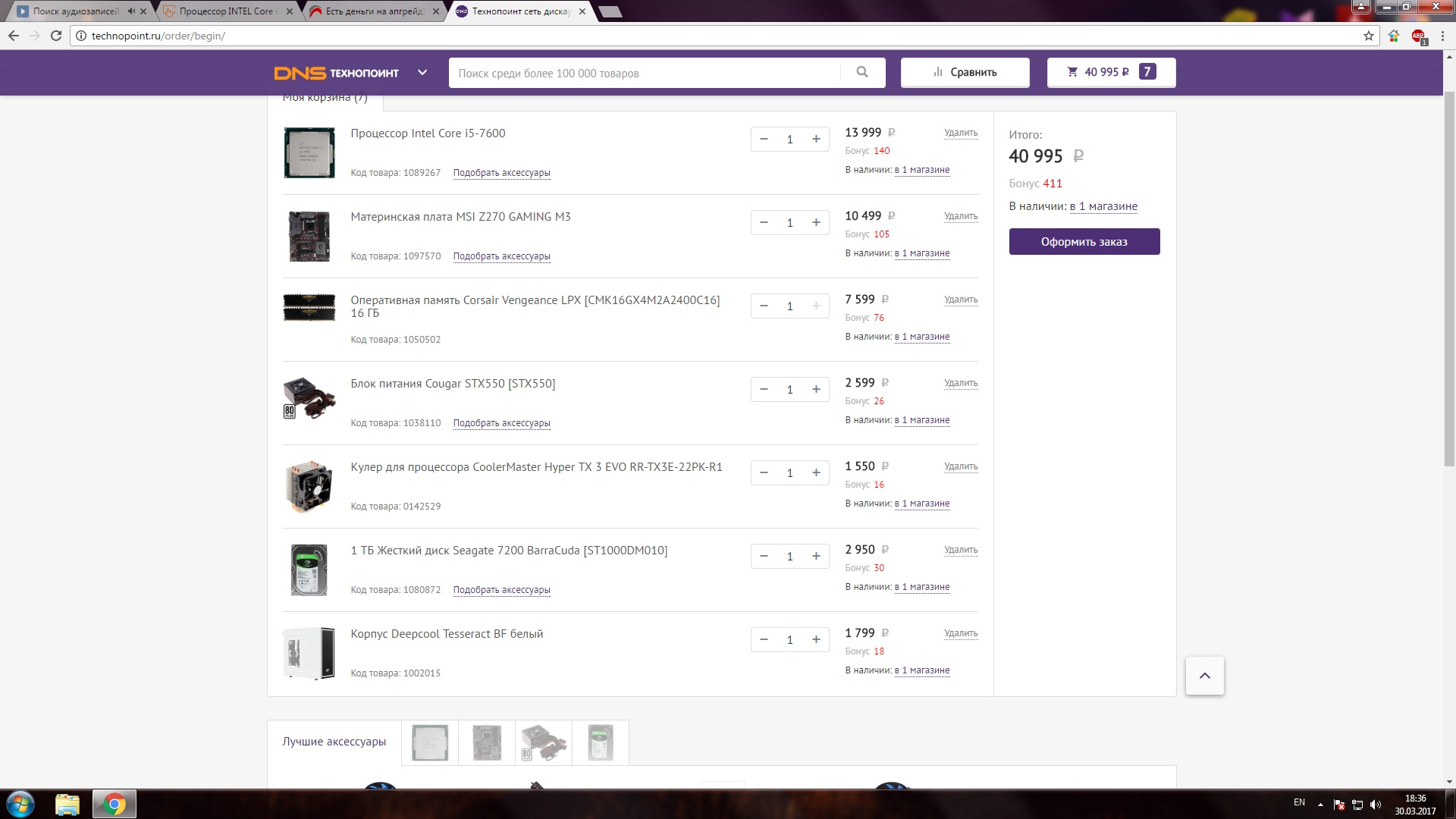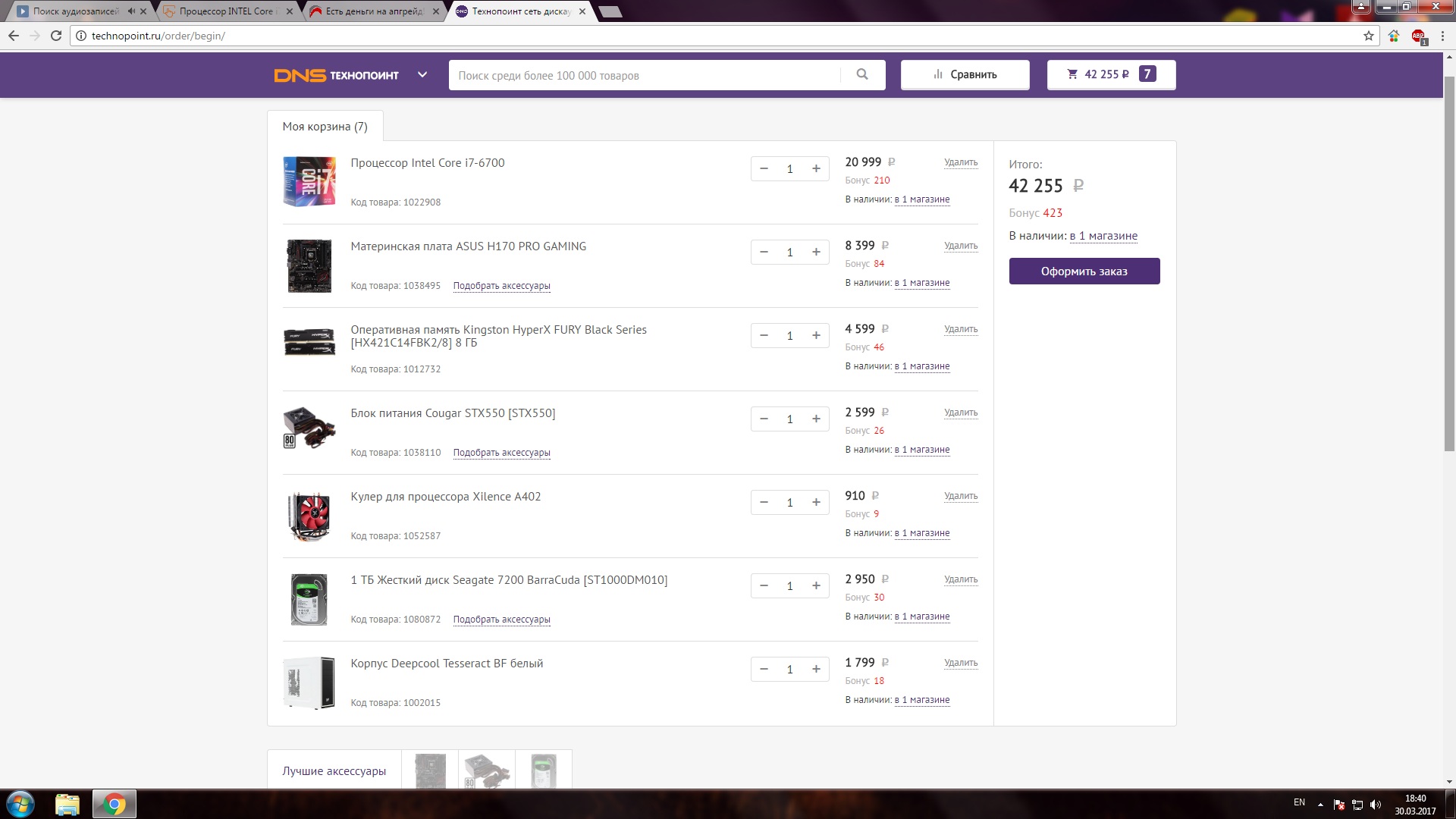 В сборке на АМД подобрано если честно очень неразумно: http://technopoint.ru/product/45903e49c ... 320e-sale/ - тот же проц но на 40% дешевле, зачем переплачивать http://technopoint.ru/product/c33d3bd2b ... ming-sale/ - еще бессмысленной переплаты 2000 долой http://technopoint.ru/product/7ae5d1684 ... 6-gb-sale/ - еще пара тысчонок в закрома родины http://technopoint.ru/product/af8af100e ... rect-sale/ - FX не надо гнать до посинения, его надо гнать правильно, хорош совместимостью с приличной эффективностью в небольшом разгоне, если не пугает установка - брать мачо http://technopoint.ru/product/8014846c2 ... 6-eu-sale/ - а вот на БП совсем экономить не стоит, брать поделки с псевдовысокой мощностью не стоит, реальное потребление типового компа в районе 300Вт(даже FX8xxx + RX480 в нормальном разгоне вписываются в 450 в пиках и в 350типовых), этот интересен только пока скидка большая и стоит чуть за 5тыр, если придушить жабу то RM550x Корпус дело вкуса(но я бы посмотрел что то поинтересней, нужен белый?), винты нынче все одинаковые и искать существенную разницу бессмысленно 1Тб и 7200 и ладно... 6тыр экономии немного усохнут(возможно на БП и корпус), но как вариант подумать о замене 460й(но только с условием удачной продажи) но 470/4 пока проблема так что и менять не на что. Можно подождать Ryzen 5, с учетом того что его можно брать и без разгона может выйти то на то, только ждать еще минимум 2 недели.