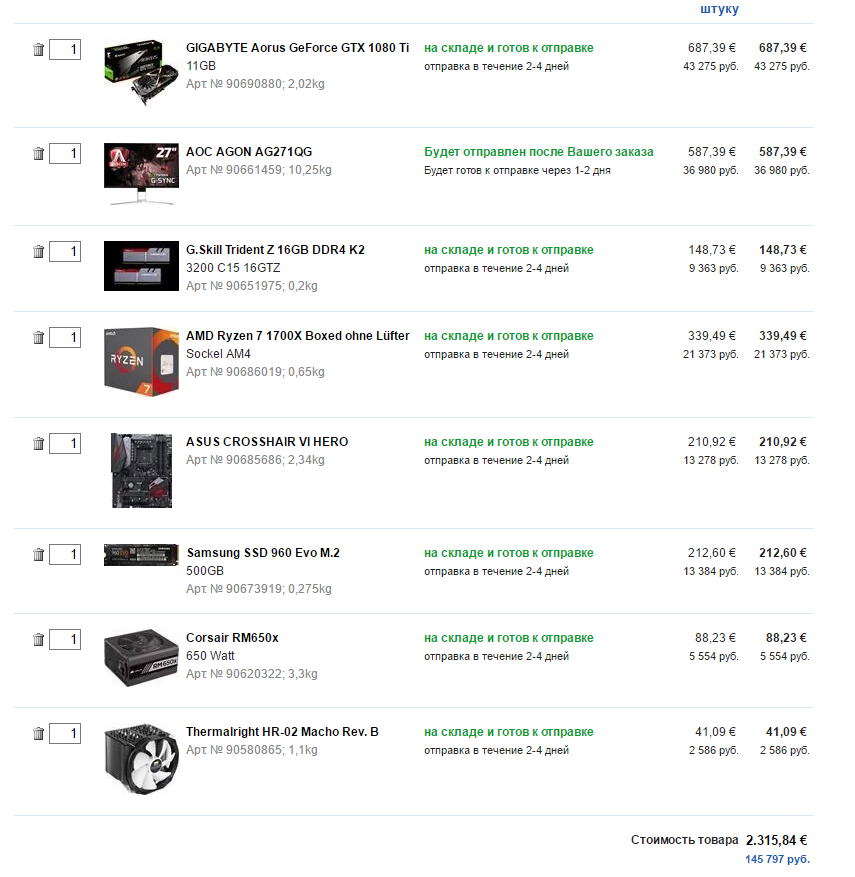 Собираюсь собрать "зверя" что бы не вспоминать об апгрейде ближайшее время. Бюджет 2500-3000$ Монитор 2к будет. Покупать буду на amazon.co.uk.