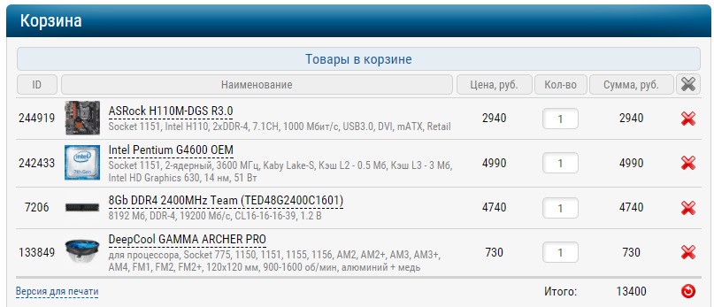 ---------- Зашел в Яндекс.Маркет Москвы и выбрал то, что Яндекс выдает в верхних строчках. Получил вот такой конфиг. Бюджет как раз под конфиг + 2000 тысячи руб. MSI H110M PRO-D Intel Pentium G4400 какой-нить простой кулер 4GB 2133MHz Samsung Все нормально или память взять подешевле? (все остальное для ПК уже есть или уже выбрано)