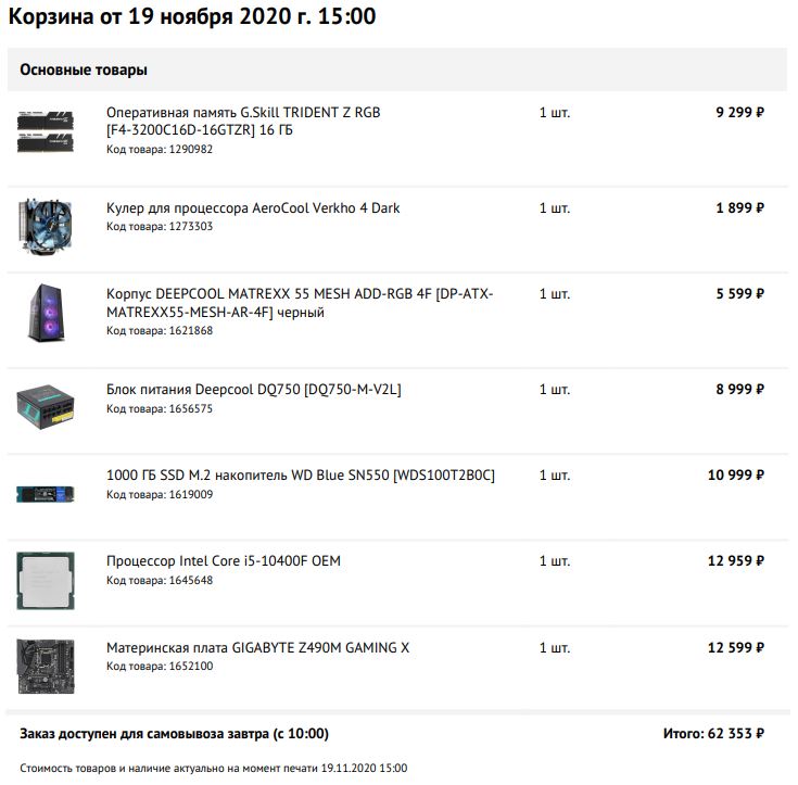 вот тут собрал конфиг на 10100. смущает материнская плата. может есть варианты получше?